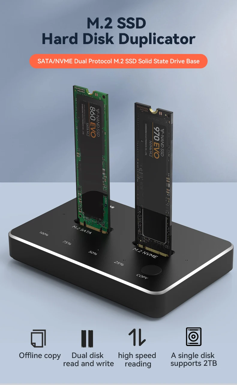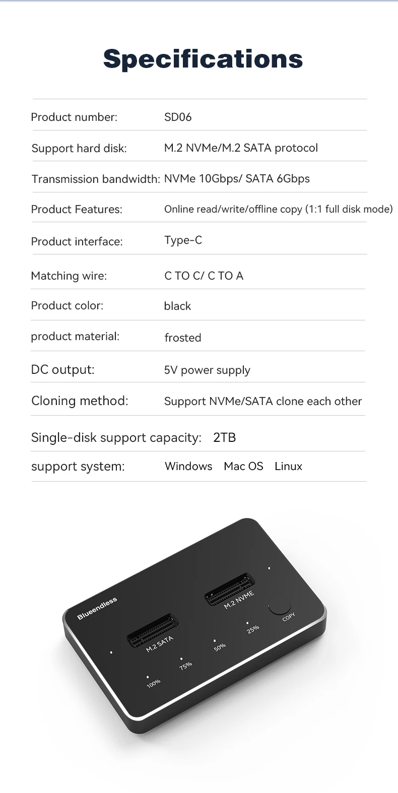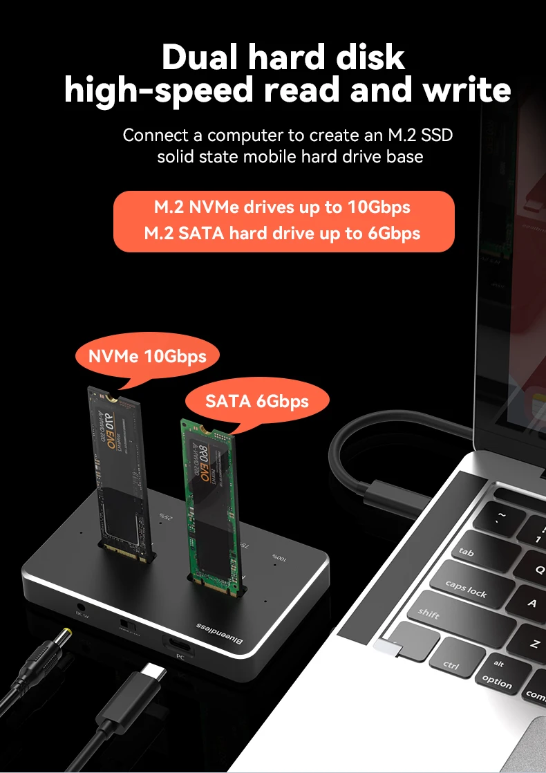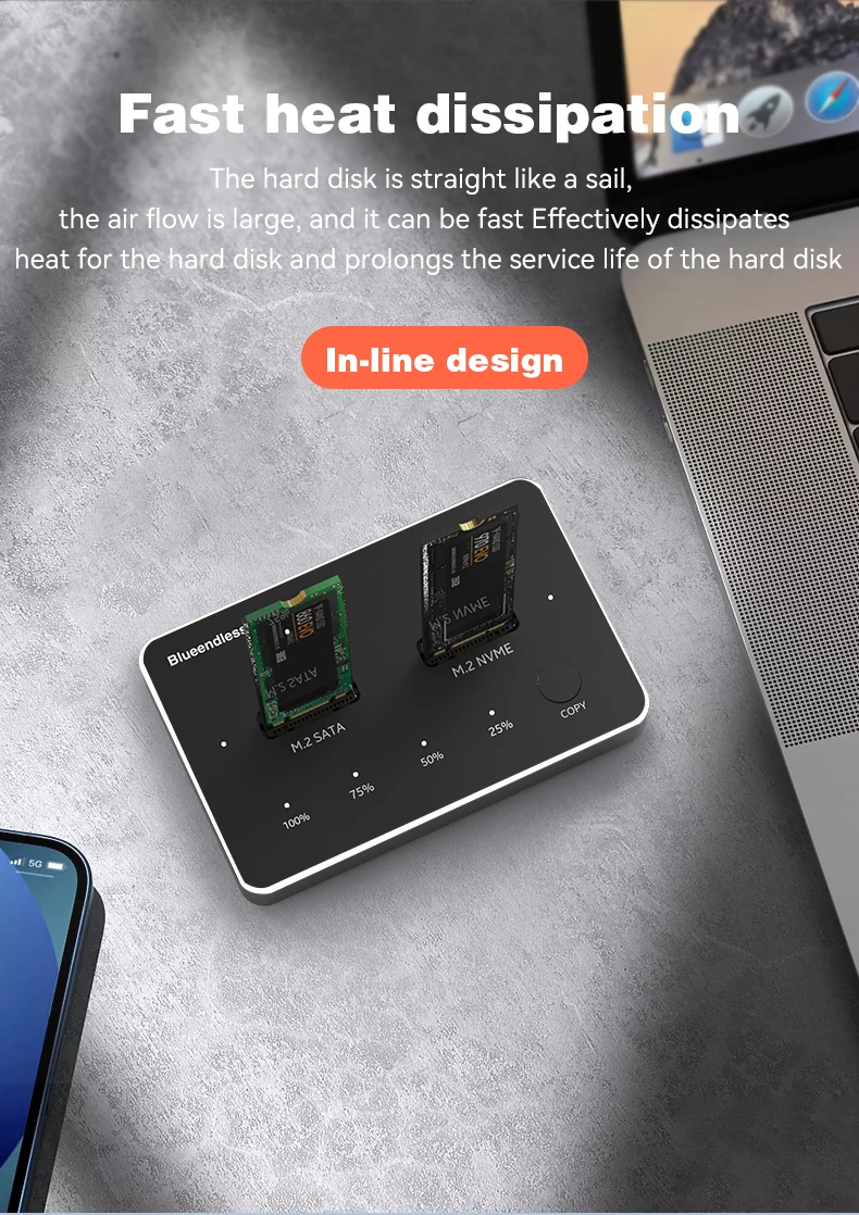 Comprar Blueendless-estación de acoplamiento Ssd de dos bahías, carcasa m.2, PCIe, NVME, tipo C, Usb3.1, 10gbps, disco sólido 25