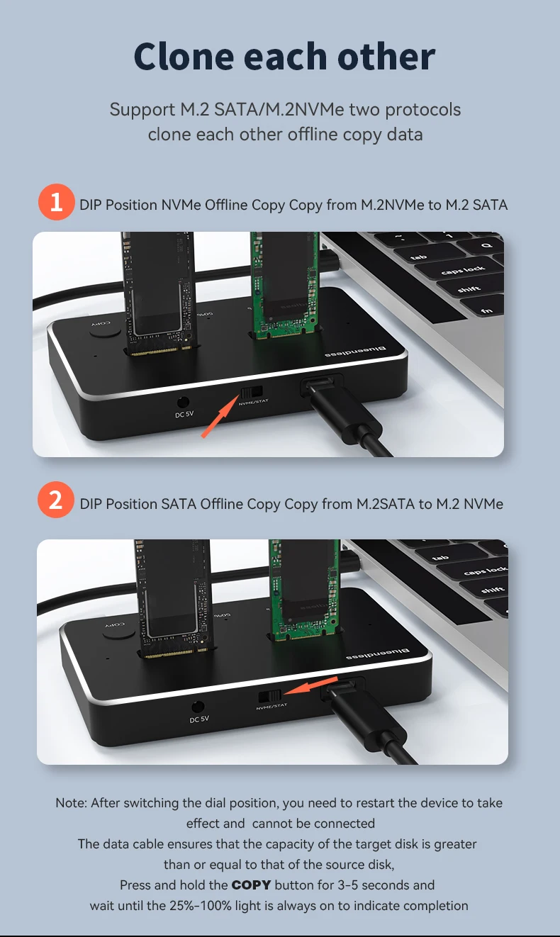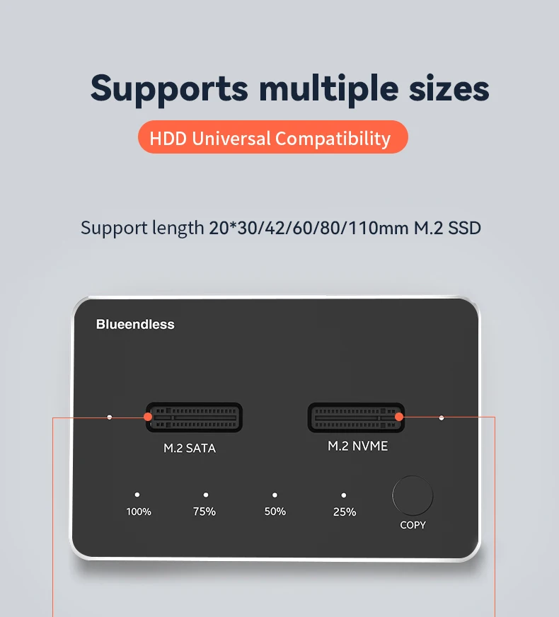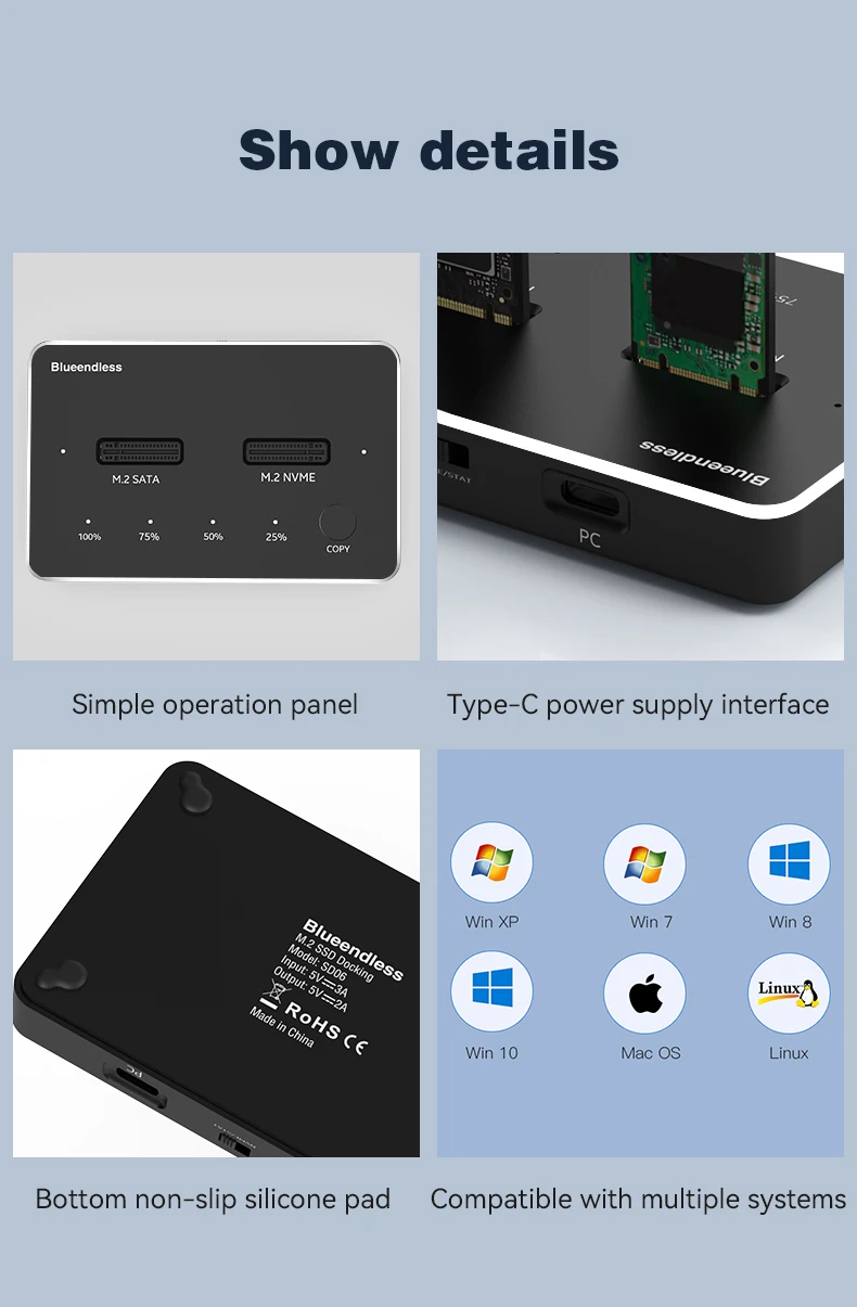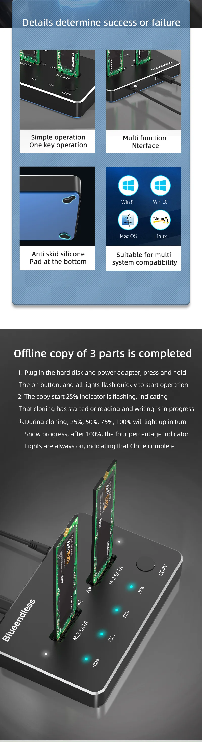 Comprar Blueendless-estación de acoplamiento Ssd de dos bahías, carcasa m.2, PCIe, NVME, tipo C, Usb3.1, 10gbps, disco sólido 25