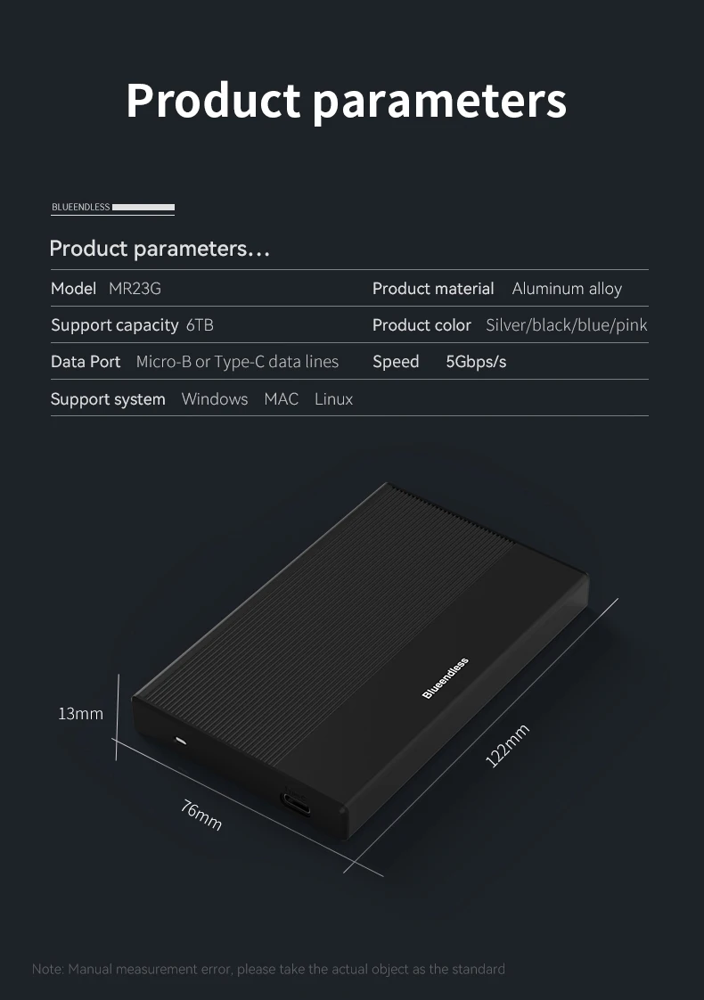 Comprar Blueendless-funda de aluminio para disco duro externo, carcasa para HDD, USB 3,0, Sata, 2,5, para ordenador portátil, PC