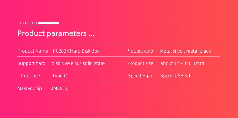 Blueendless PCle NVME M.2 SSD cajas de disco duro tipo C Puerto transmisión de alta velocidad caja de disco duro negro aluminio HDD