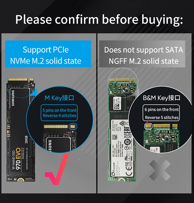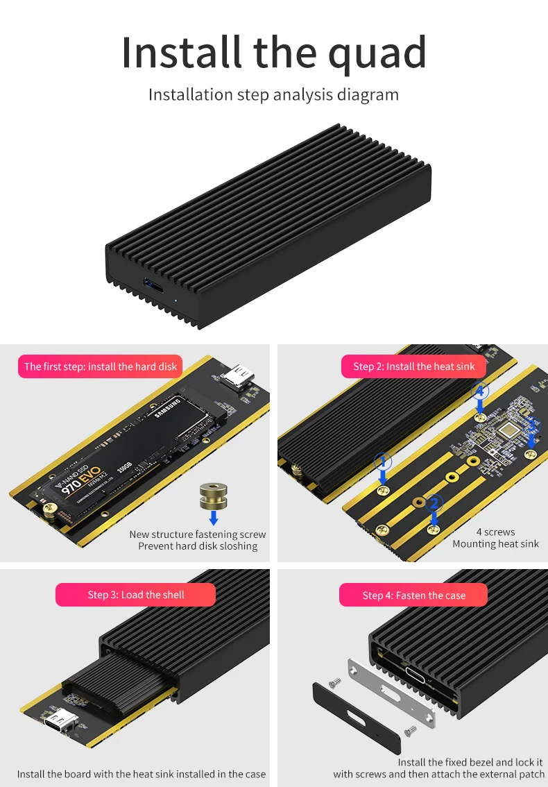Comprar Blueendless PCle-carcasa de disco duro NVME M.2 ssd, Puerto tipo c, transmisión de alta velocidad, negro, aluminio, hdd