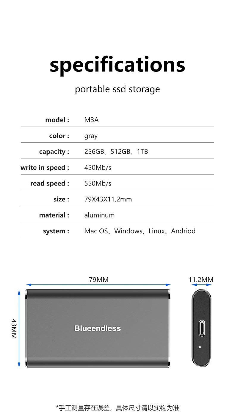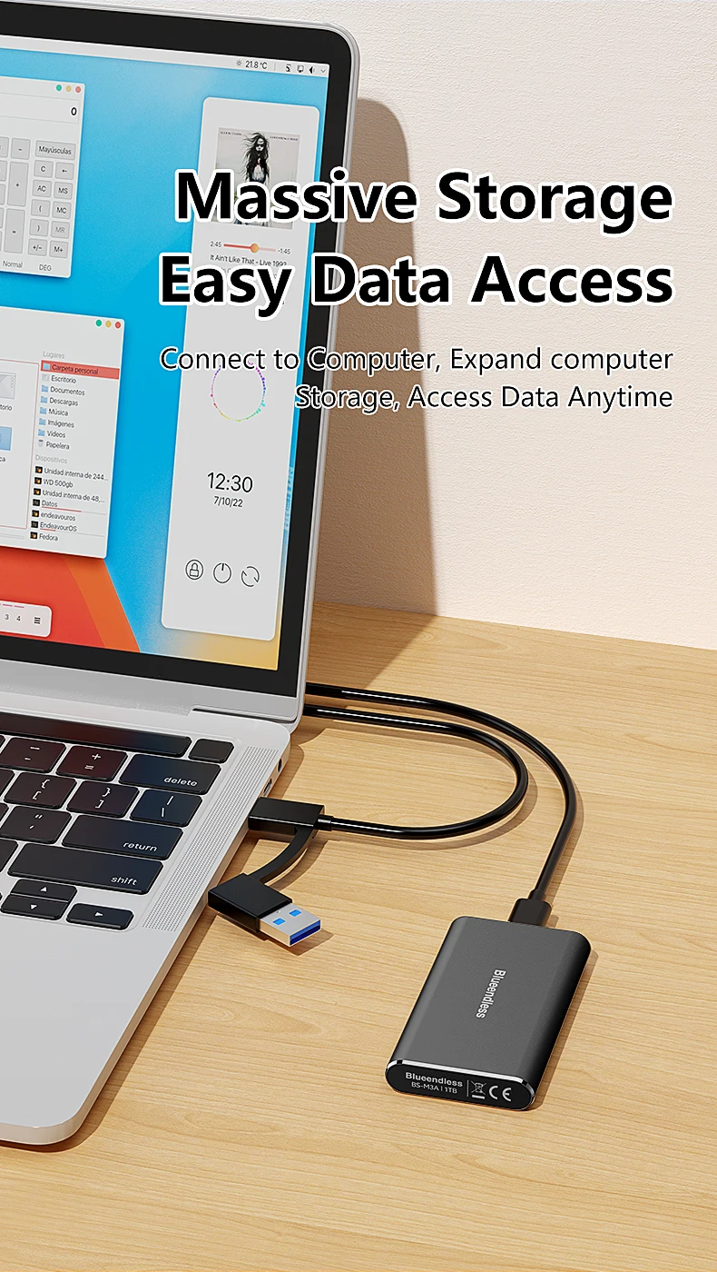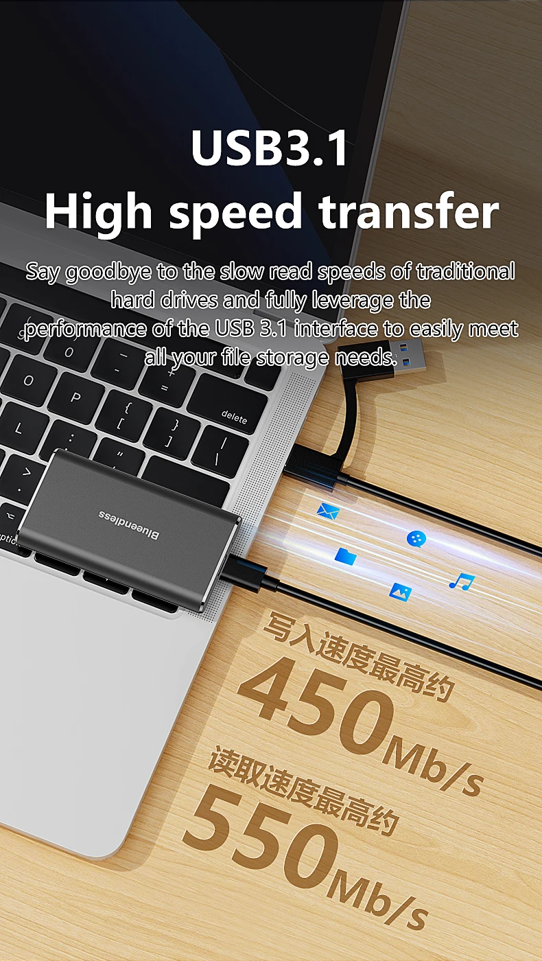 Comprar Blueendless-unidad de estado sólido SSD externa portátil, 256GB, 512GB, 1TB, velocidad de lectura de 520 mb/s, velocidad de escritura de 450 mb/s, para ordenadores portátiles y de escritorio