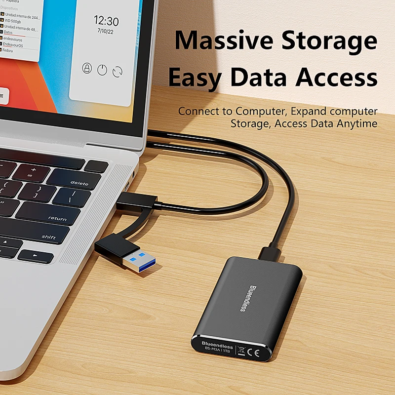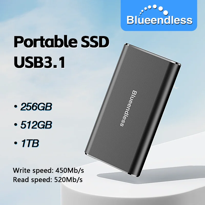 Comprar Blueendless-unidad de estado sólido SSD externa portátil, 256GB, 512GB, 1TB, velocidad de lectura de 520 mb/s, velocidad de escritura de 450 mb/s, para ordenadores portátiles y de escritorio