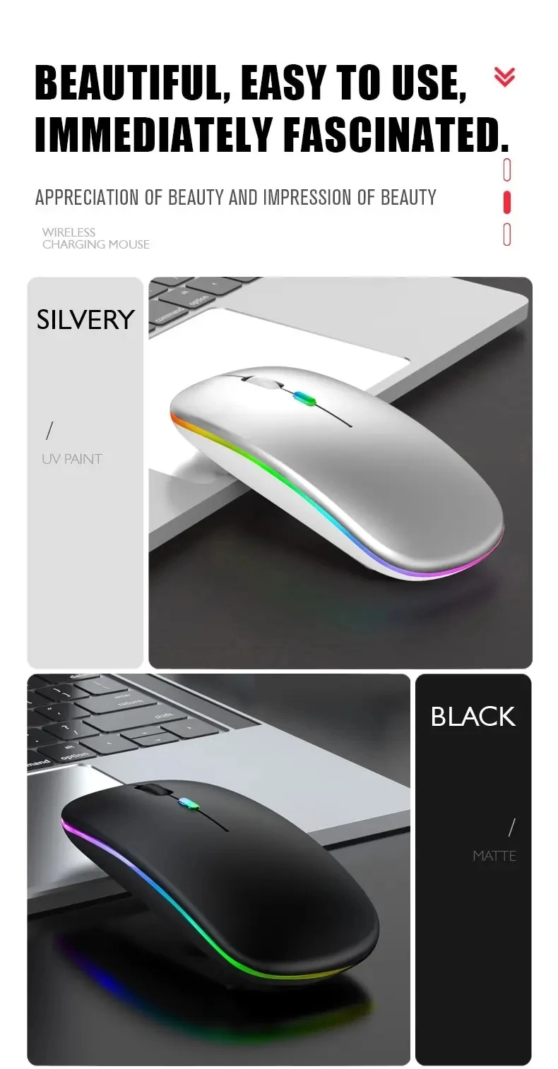 Comprar Bluetooth 5,2 micrófono de modo Dual ordenador Bluetooth ratón inalámbrico carga brillo 2,4G USB ratón inalámbrico portátil