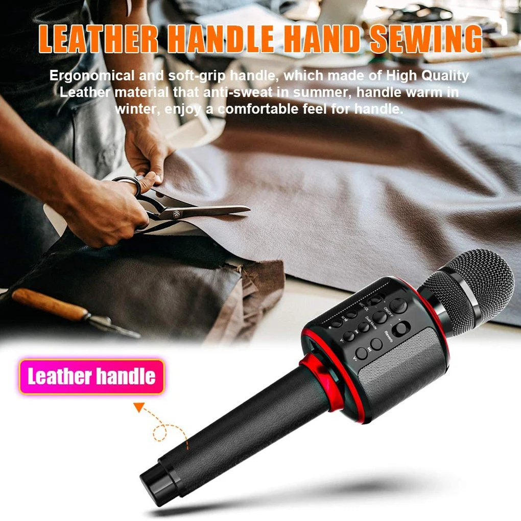 Este micrófono portátil para karaoke está diseñado con un mango de cuero artificial que es conveniente para sostener y usar, se sentirá cómodo de usar.