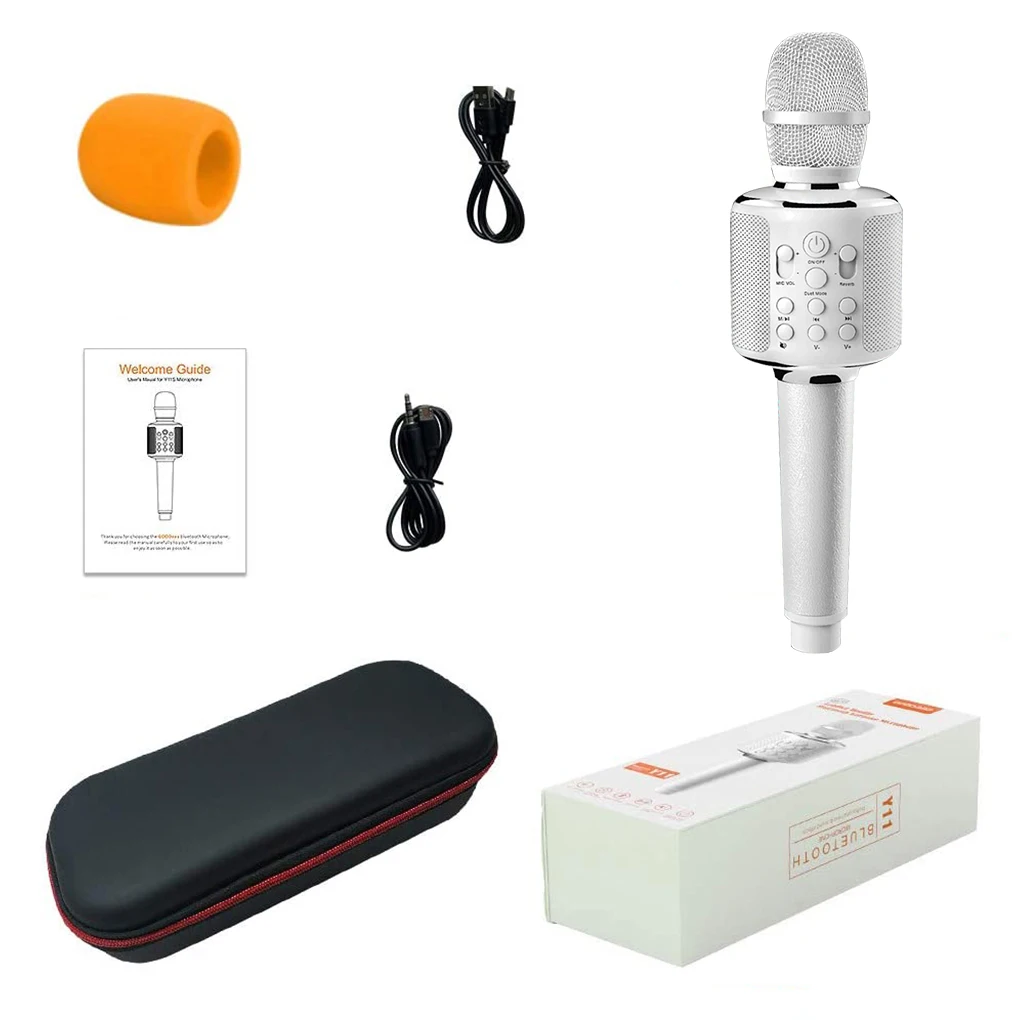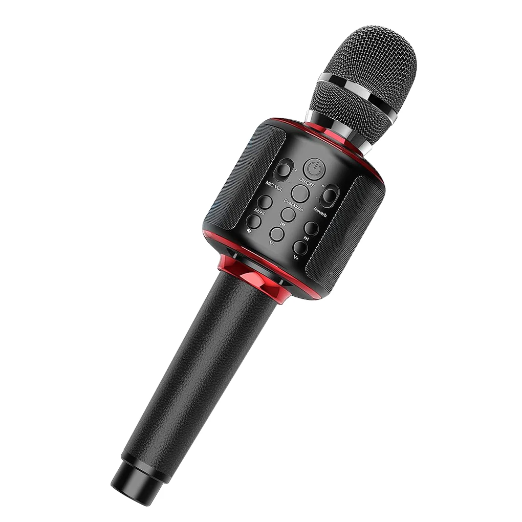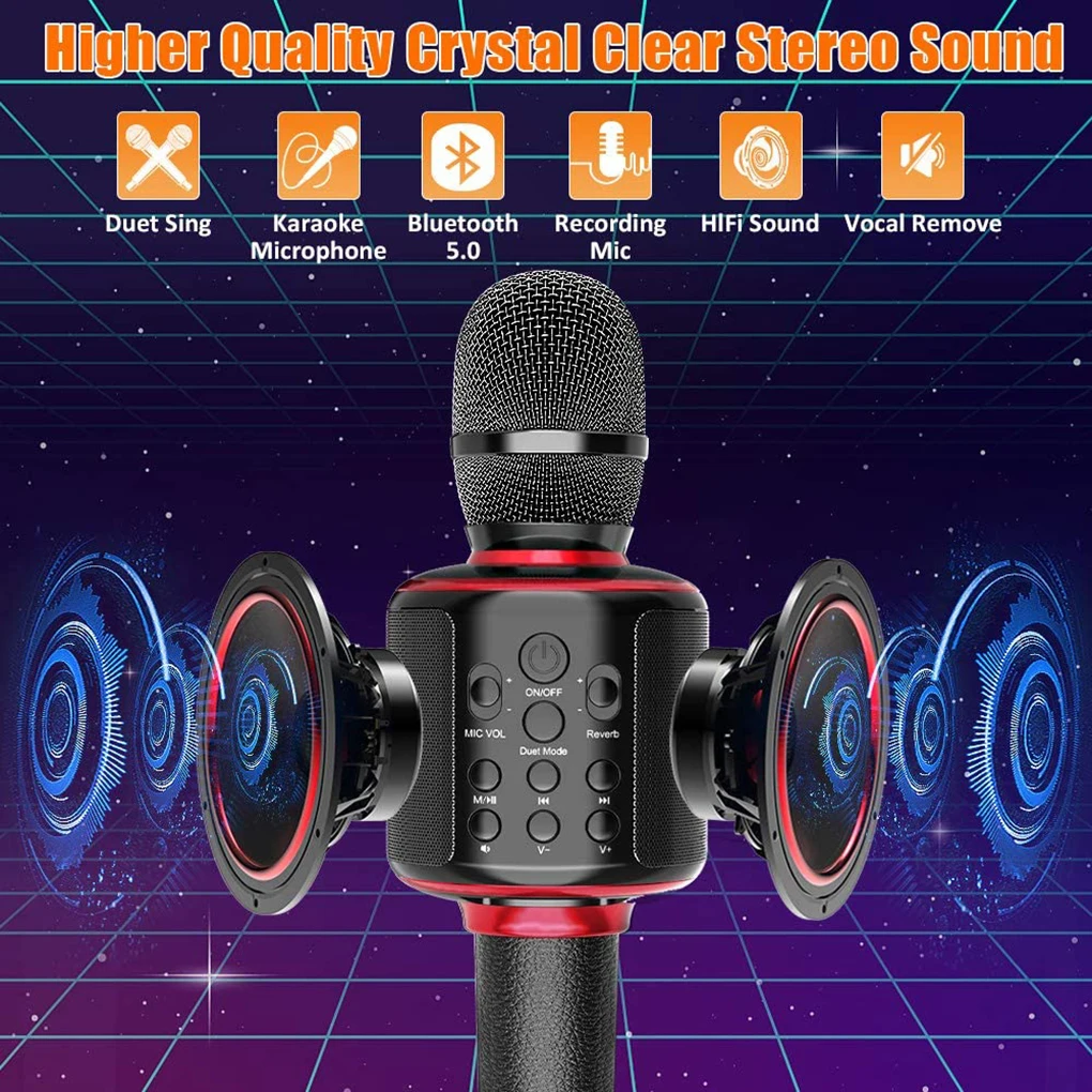 Este micrófono de karaoke inalámbrico es adecuado para portátiles, teléfonos inteligentes, televisores inteligentes y otros dispositivos, y admite dúo, eco, ajuste de volumen, voz, conexión compatible con Bluetooth, karaoke cantando y tocando música.