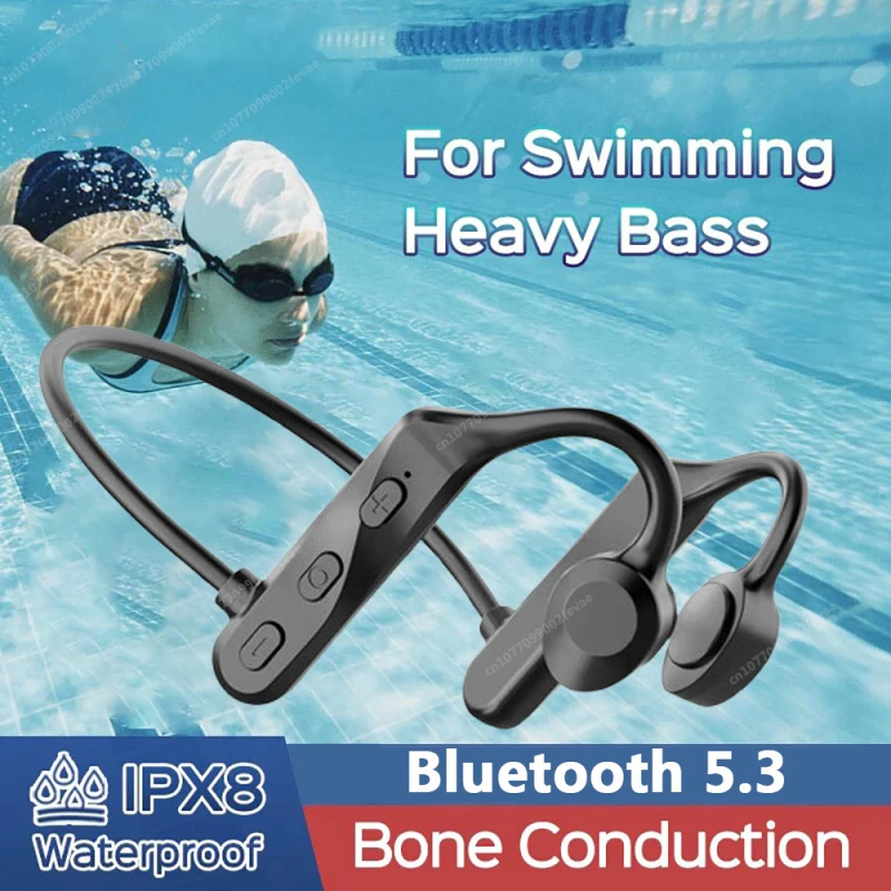 Comprar BMAD-auriculares de conducción ósea con Bluetooth 5,3, IPX8, resistentes al agua, calidad de sonido HIFI, cuello colgante, no en la oreja, para natación