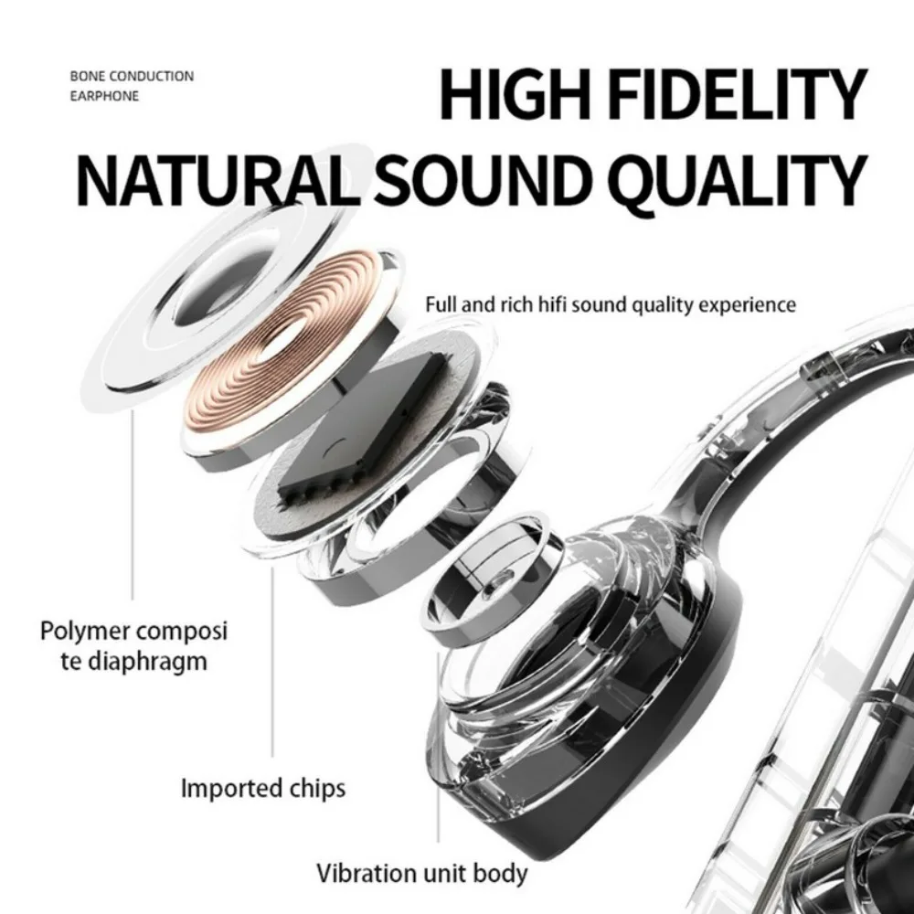 1.**Tecnología de conducción ósea**: Los auriculares inalámbricos K69 utilizan tecnología avanzada de conducción ósea, que suministra sonido a través de los pómulos y garantiza un audio claro sin bloquear los oídos.