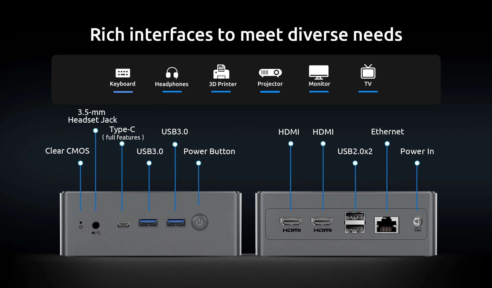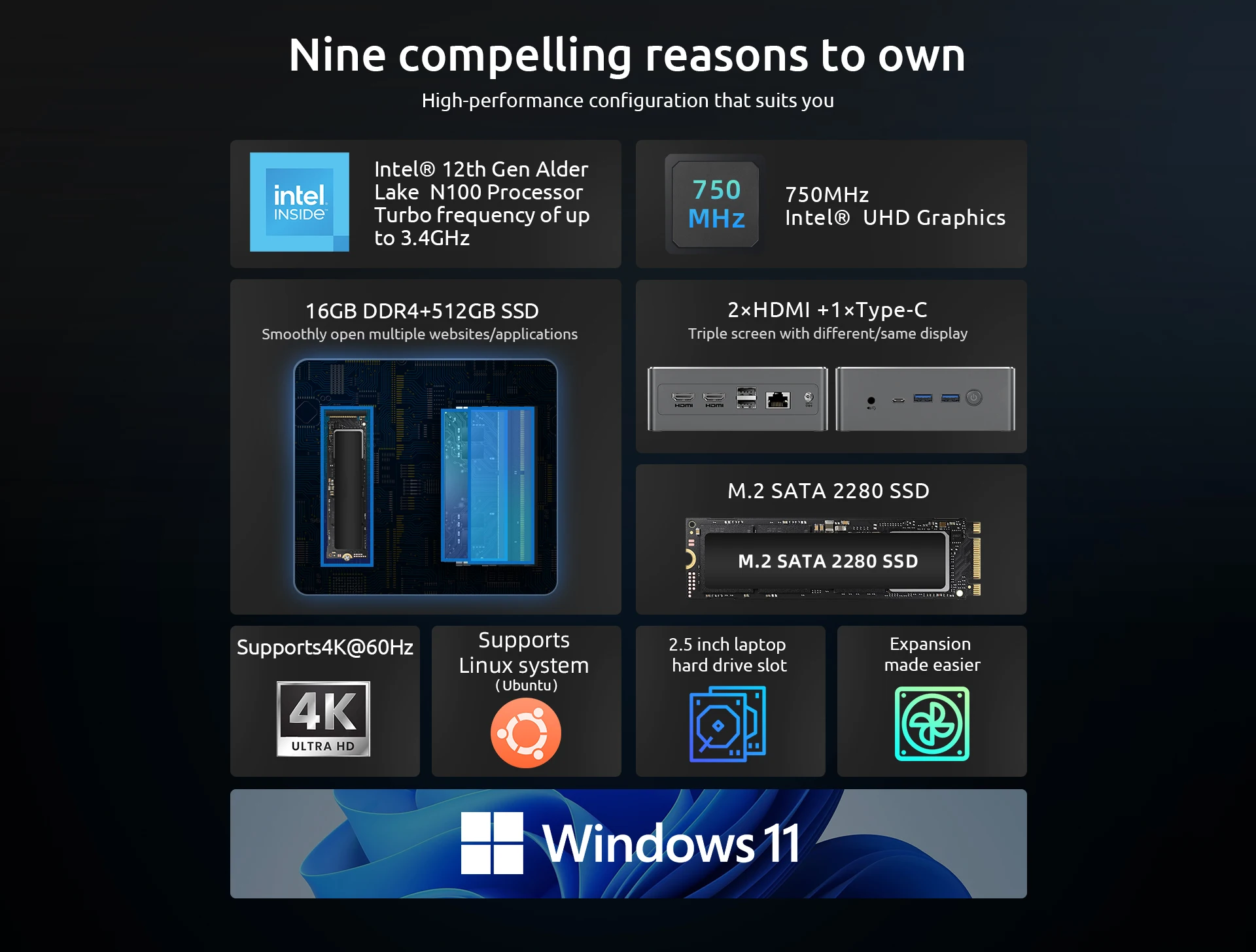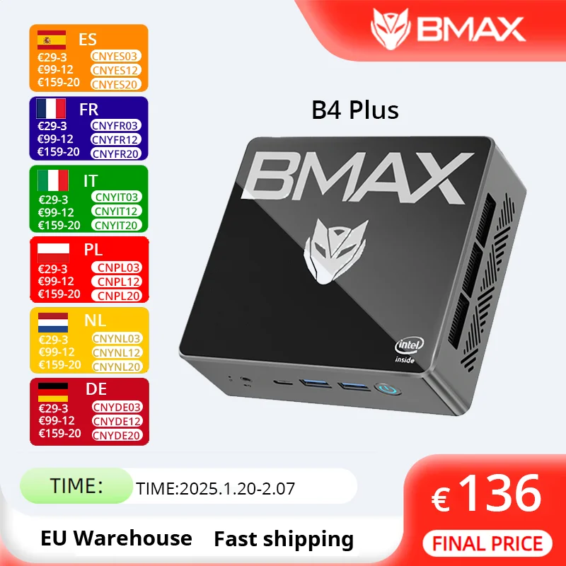 Comprar BMAX B4 Plus Mini PC Windows 11 PC Intel N100 16GB DDR4 512GB SSD 2 * HDMI 1 * Tipo-C Admite gráficos Intel UHD 4K@60Hz 750MHz