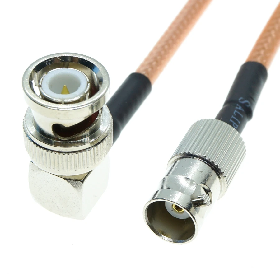Comprar BNC macho de ángulo recto a conector hembra BNC, lote RF coaxial, puente Pigtail, 50ohm, doble blindaje, Cable RG142