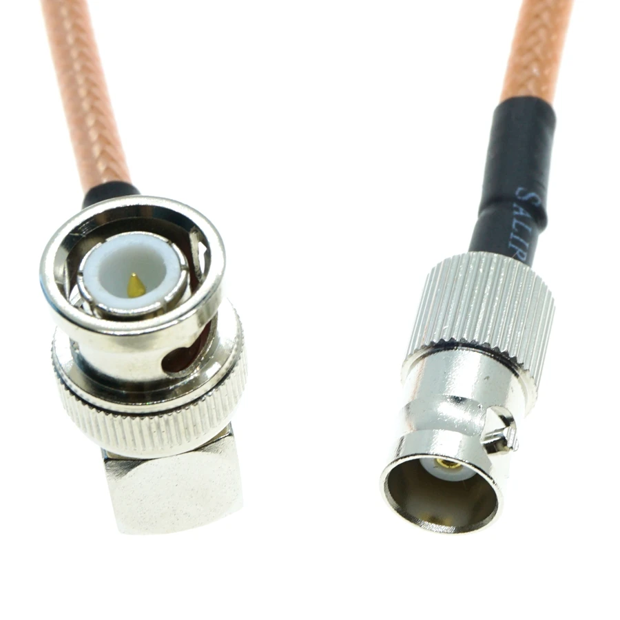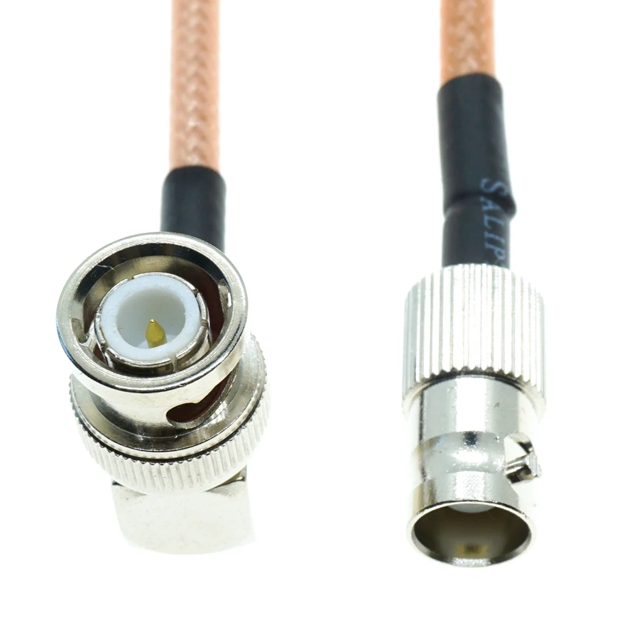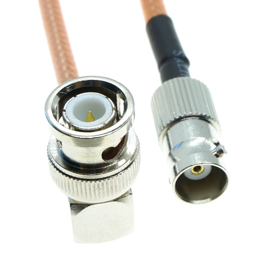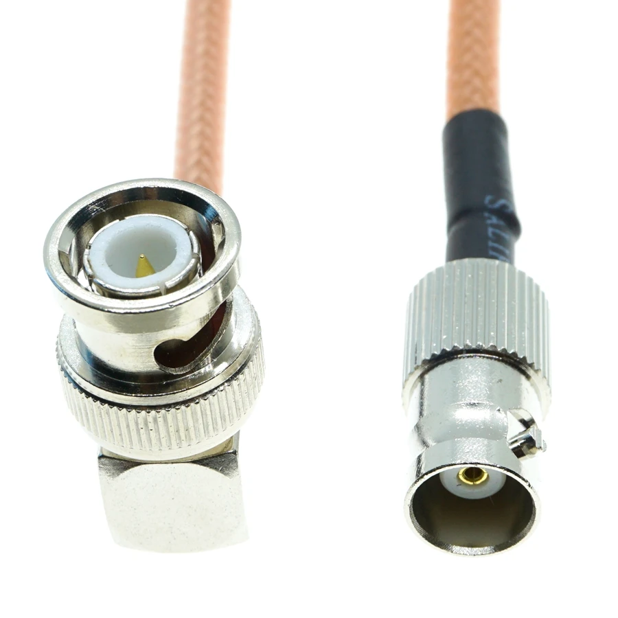 Comprar BNC macho de ángulo recto a conector hembra BNC, lote RF coaxial, puente Pigtail, 50ohm, doble blindaje, Cable RG142