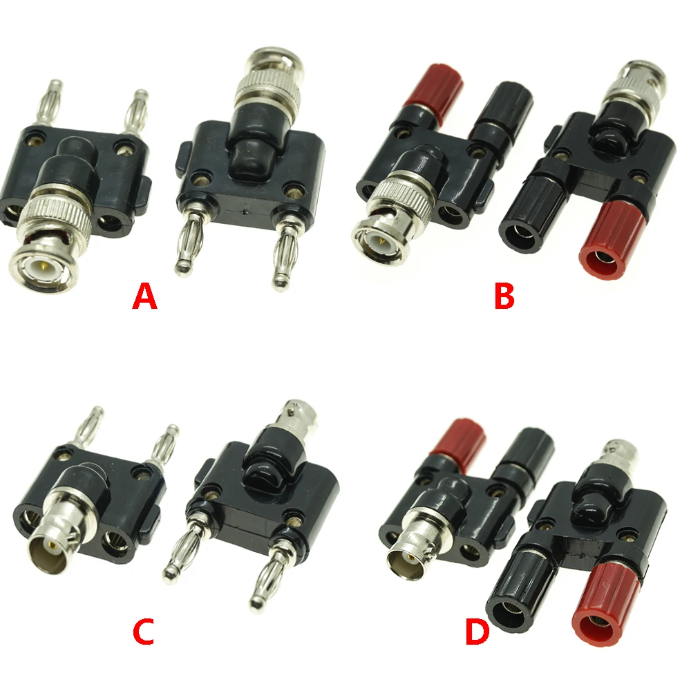 Comprar BNC macho hembra a dos Dual 4mm Banana macho hembra enchufe Jack Coaxial conector divisor adaptador RF 50ohm