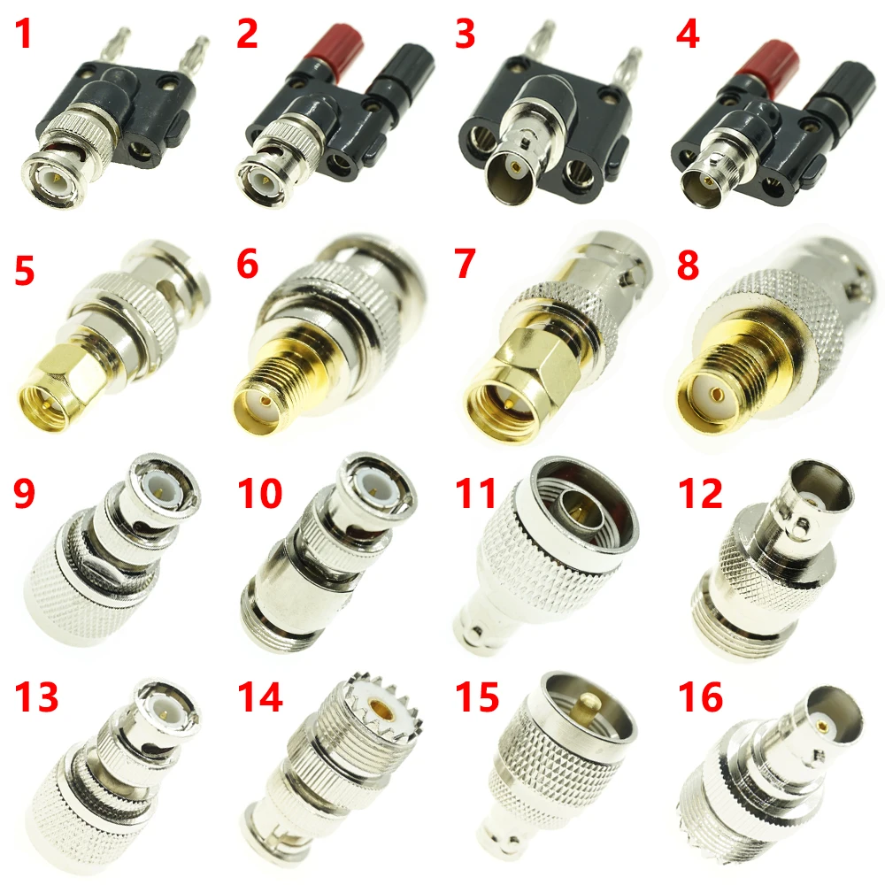 Comprar BNC macho hembra a SMA UHF N PL259 SO-239 2x doble BANANA macho hembra coaxial conector RF kit de prueba