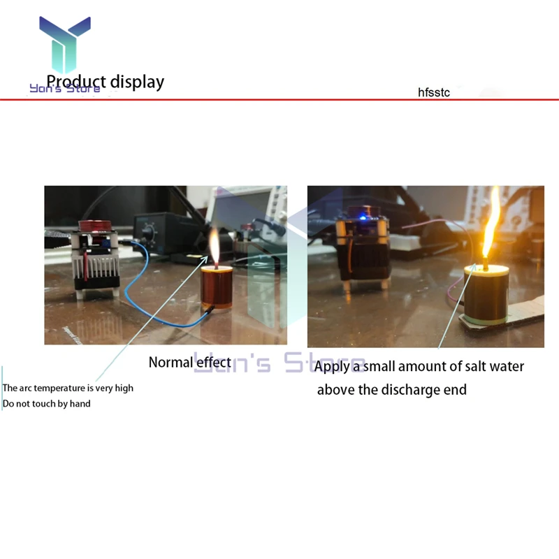 Pasos/métodos de uso: 1. Coloque el host y conecte el host y la bobina secundaria correctamente. 2. Conecte la fuente de alimentación y el ventilador comenzará a funcionar. 3. Encienda el interruptor, y la luz indicadora al lado del interruptor estará encendida (el lado izquierdo del interruptor estará encendido y el derecho apagado) la luz indicadora en la parte inferior de la bobina está encendida. 4. Toque la parte superior de la bobina secundaria con metal lo antes posible para encender la llama. Nota: Si el indicador de encendido está encendido pero no funciona después de encender el interruptor, debe ajustar el potenciómetro en el host. Método de ajuste: después de encender el interruptor, Gire lentamente en el sentido de las agujas del reloj hasta que la luz de señal en la parte superior del motor principal se encienda y la bobina de encendido secundaria pueda encenderse. El mejor estado es ajustar solo al arco, ¡demasiado grande hará que la corriente del circuito principal sea demasiado grande o incluso se dañe! (Todos han sido depurados antes del envío, use este método para ajustar bajo circunstancias especiales)