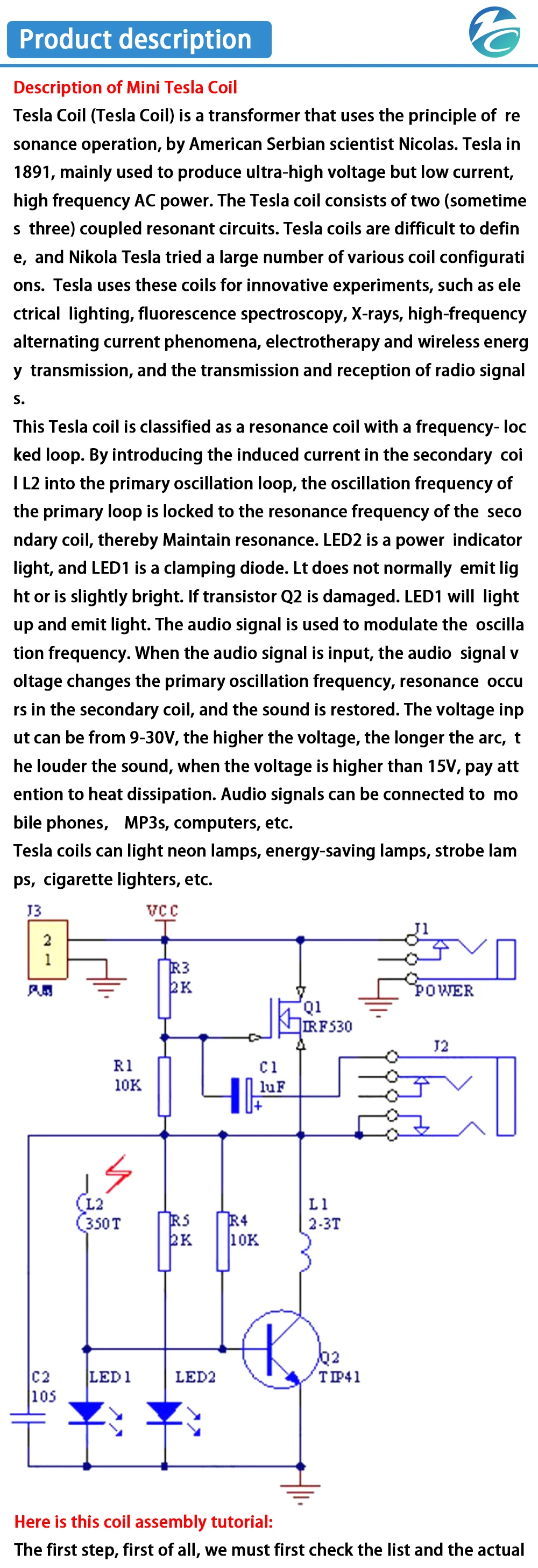 Descripción de la Mini bobina Tesla