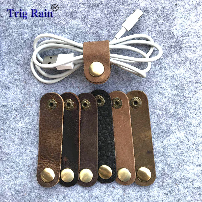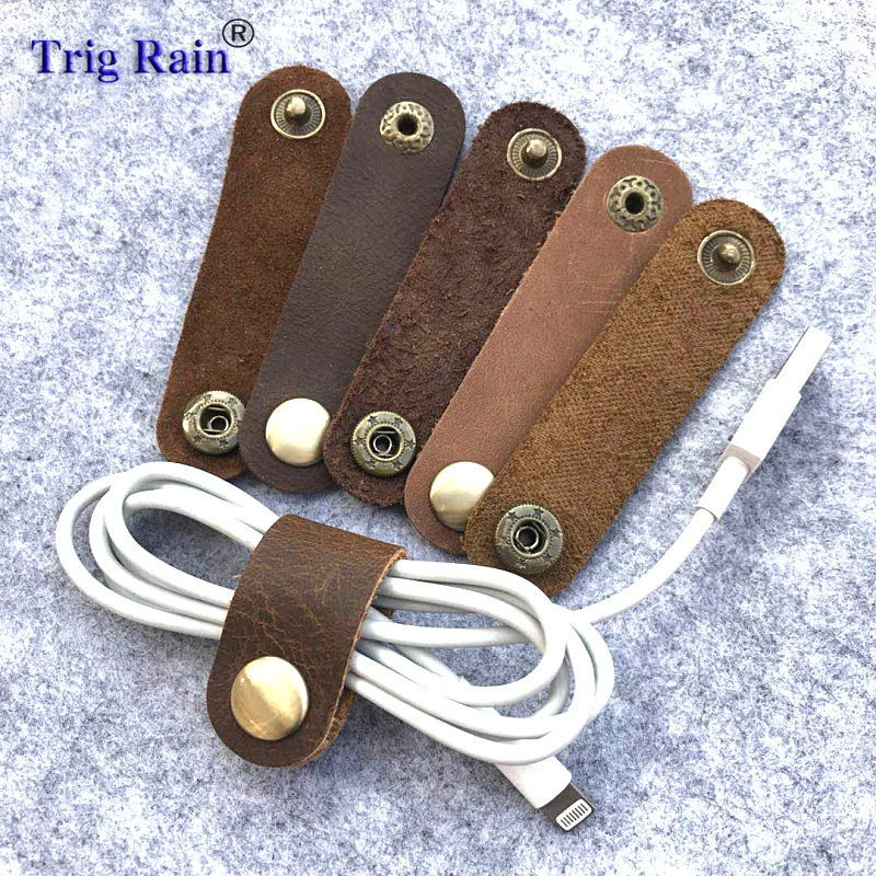 Comprar Bobinadora de cuero genuino, organizador de soporte de cables, gestión de auriculares, envoltura de línea, herramienta de hilo