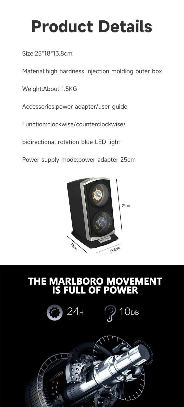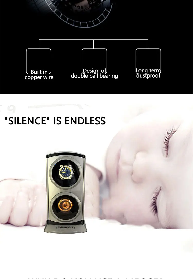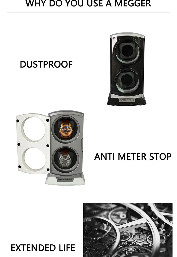 Comprar Bobinadora de reloj de dos ranuras, caja de almacenamiento de reloj automática, pantalla de tragaluz, relojes a prueba de polvo, caja de reloj mecánico