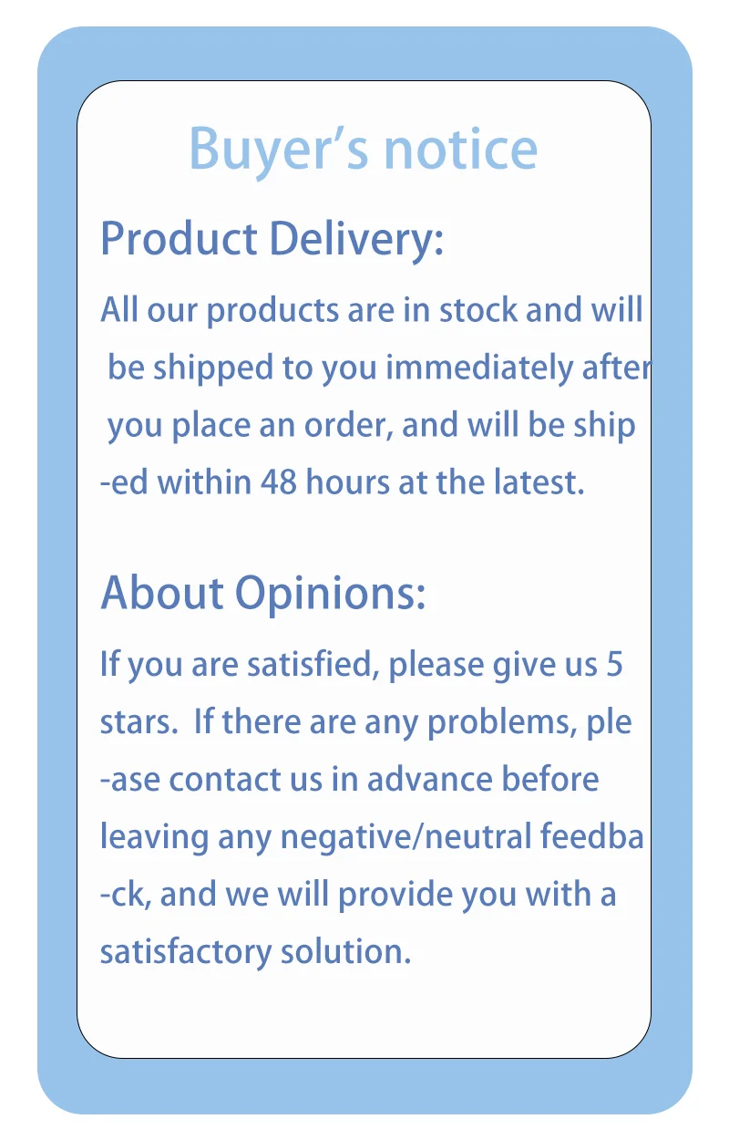 Si está satisfecho, por favor denos 5 estrellas. Si hay algún problema, póngase en contacto con nosotros con antelación antes de dejar cualquier comentario negativo/neutral, y le proporcionaremos una solución satisfactoria.