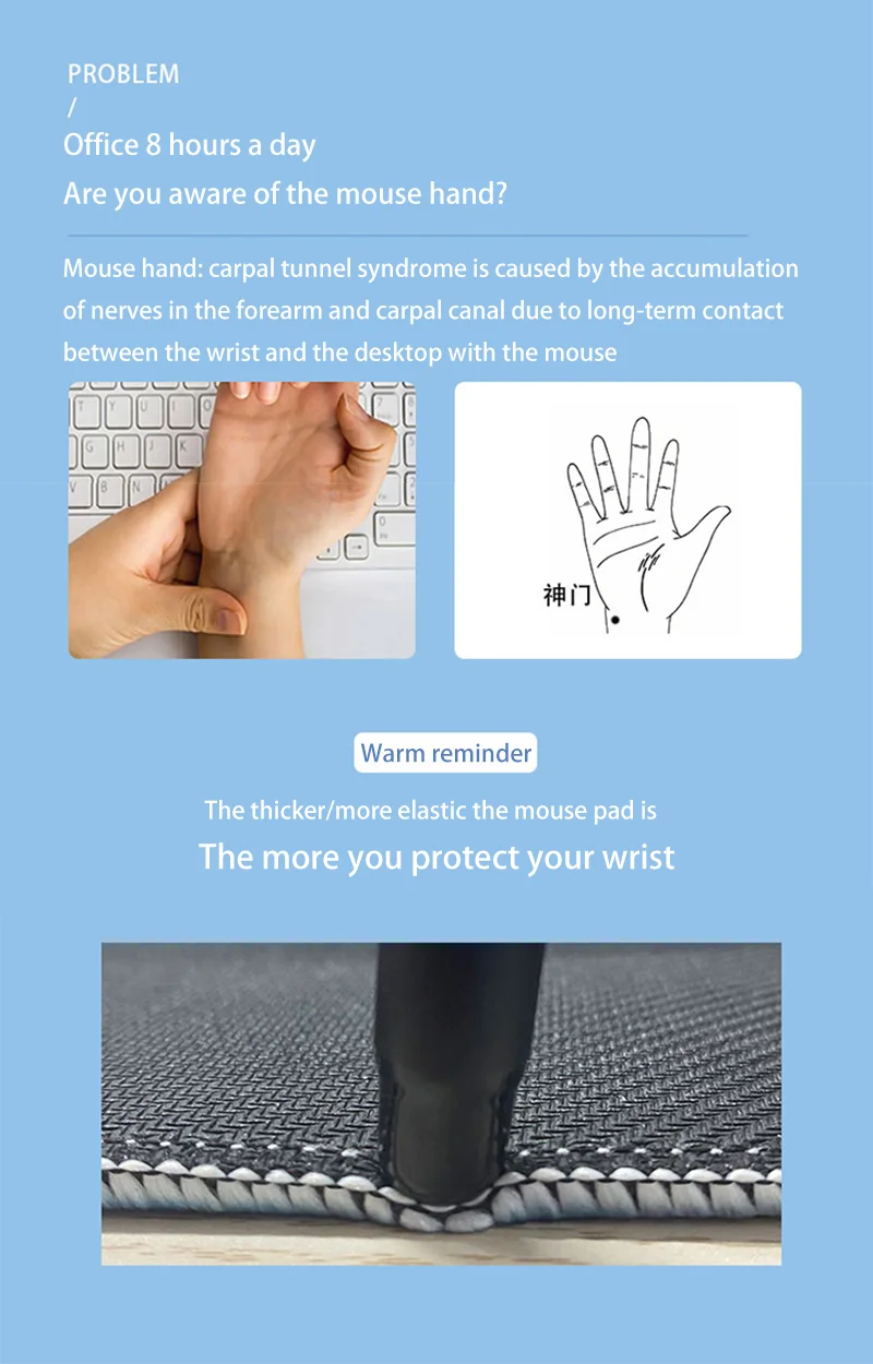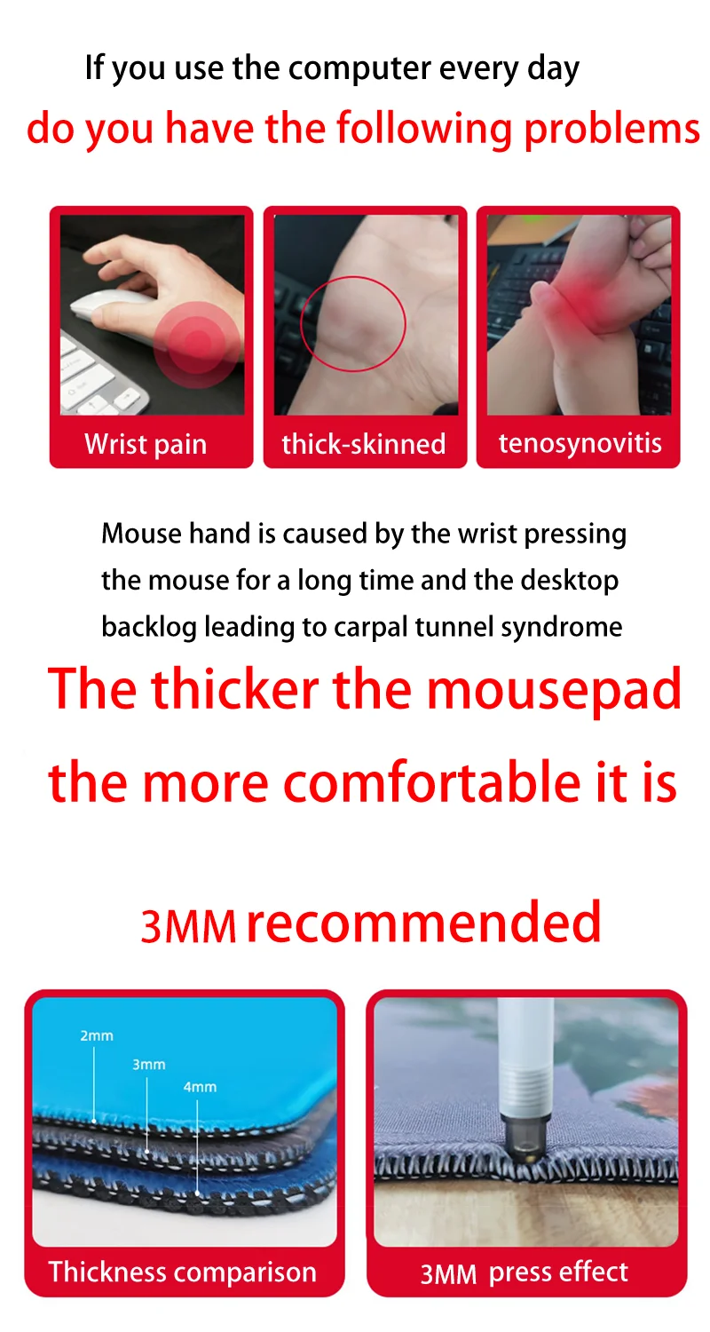 Se recomienda usar alfombrilla de ratón de 3mm, cuanto más gruesa sea la alfombrilla de ratón, más cómoda será la muñeca