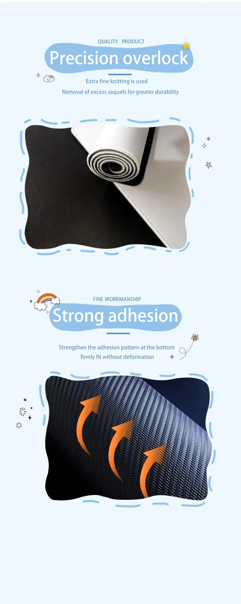 La base de goma antideslizante Suave y densa mantiene esta almohadilla de escritorio en su lugar. Esta gran alfombrilla de ratón se mantiene uniformemente plana incluso en superficies imperfectas. Simplemente sumérgete en tu trabajo o juegos sin preocuparte por el molesto movimiento de la alfombrilla del ratón.