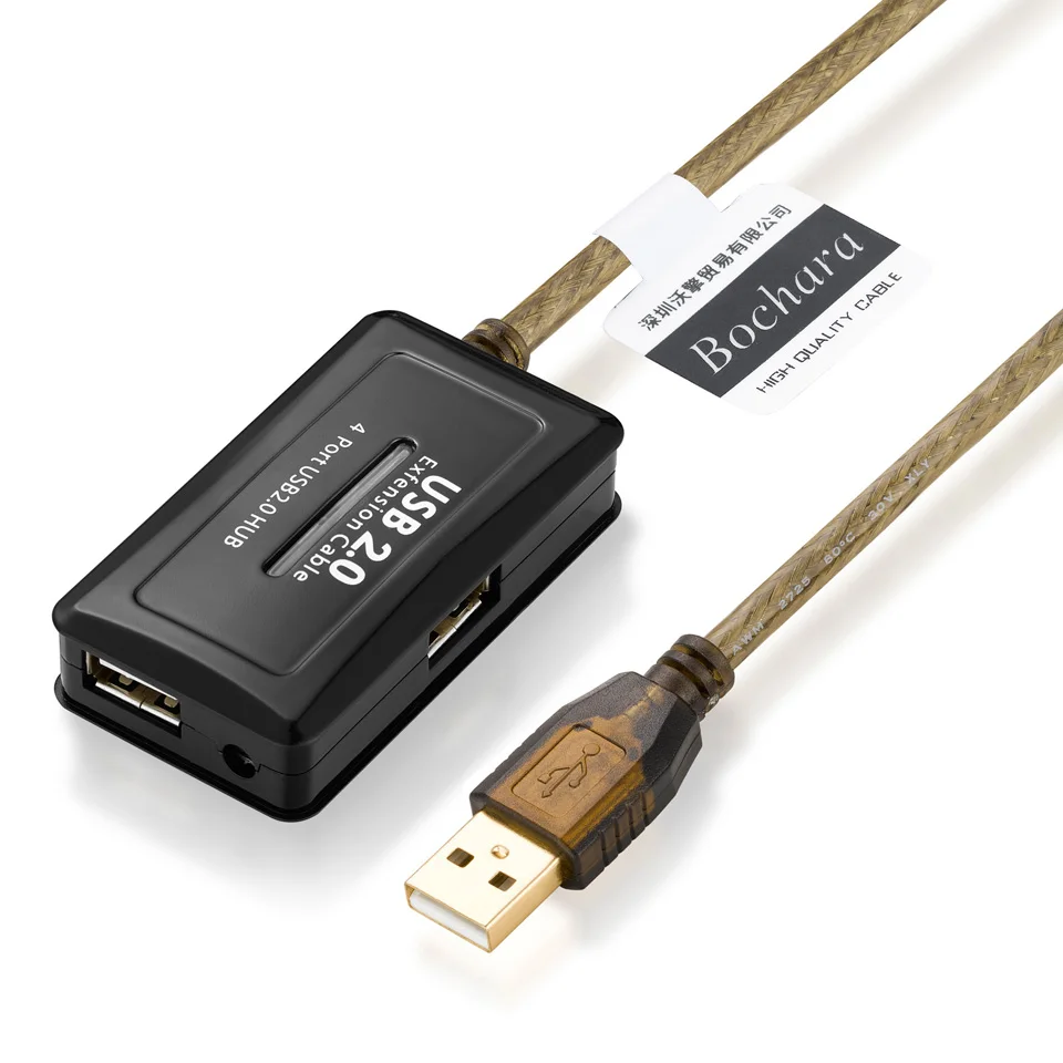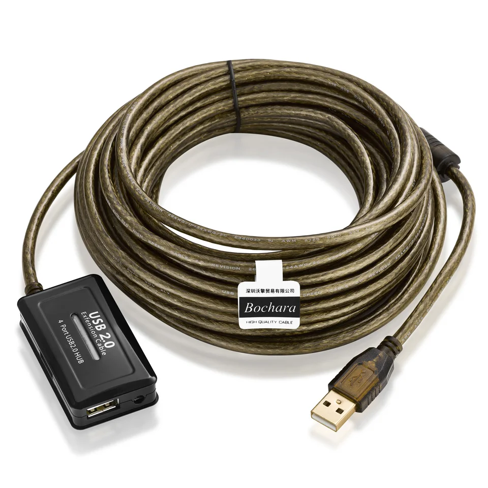 Bochara USB 2,0 4 puertos HUB Cable de extensión macho a hembra Foil + trenzado blindado integrado IC Chipset doble blindado 5M 10M