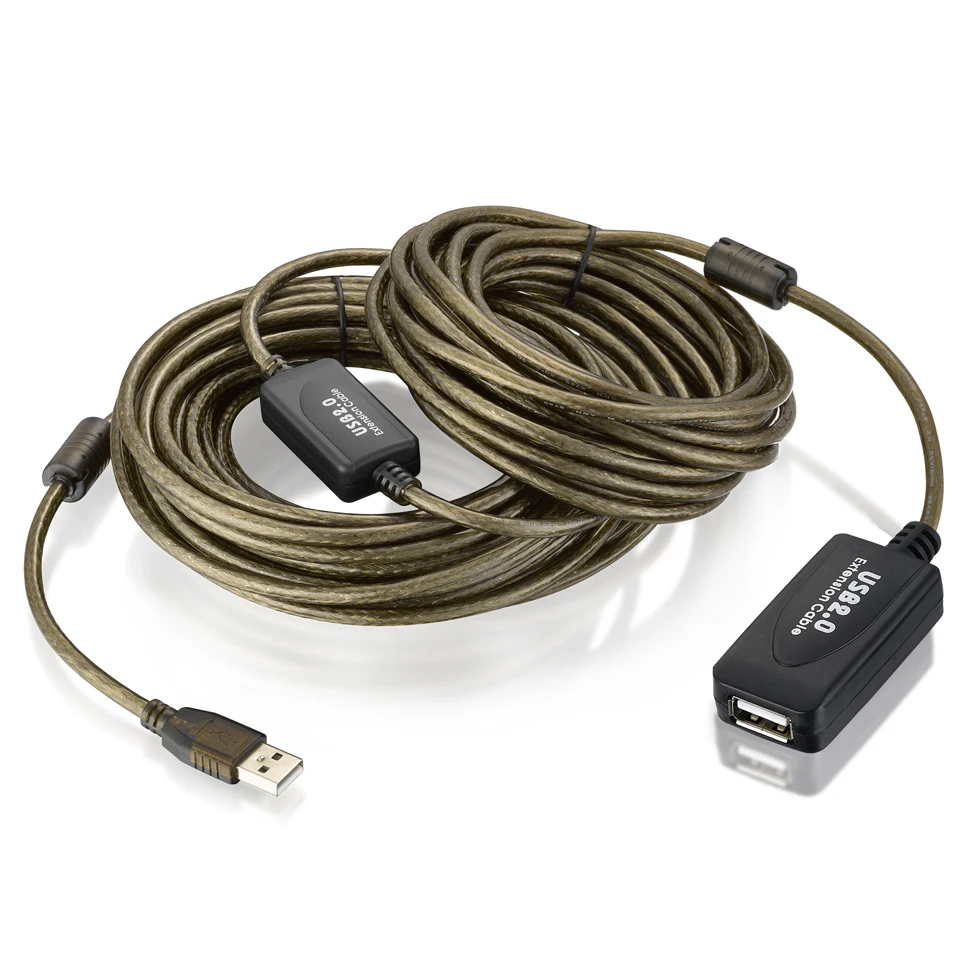 Cable de extensión Bochara USB 2,0 tipo A macho a hembra doble blindaje (lámina + trenzado) Booster Chipset FE1.1S 5m 10m 15M 20M 30m