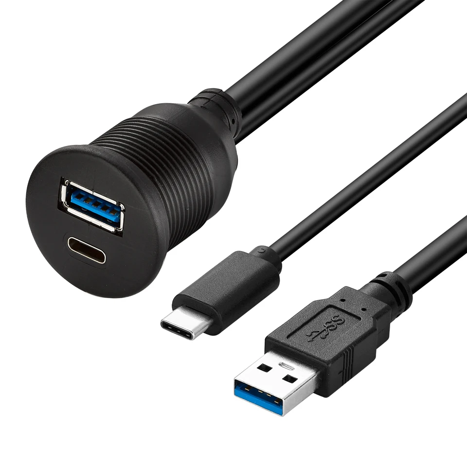 Bochara tipo C 3.1 3,0 + USB3.0 Cable de extensión macho a hembra Panel de montaje empotrado blindado para coche/barco