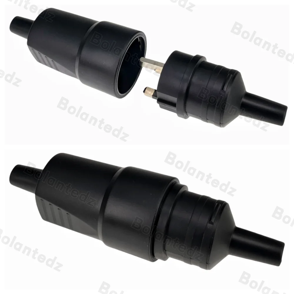 Conjunto de enchufe principal Bolantedz 250V 13A — ¡Fue un error comprarlo porque el enchufe no es compatible con los estándares de los enchufes del Reino Unido! Es demasiado profundo, por lo que no encaja correctamente en este enchufe :( Este enchufe es el único compatible con este tipo de toma, y este conector es compatible únicamente con tomas del Reino Unido. Es robusto y bien construido, pero creo que no cuenta con certificación IP44.
