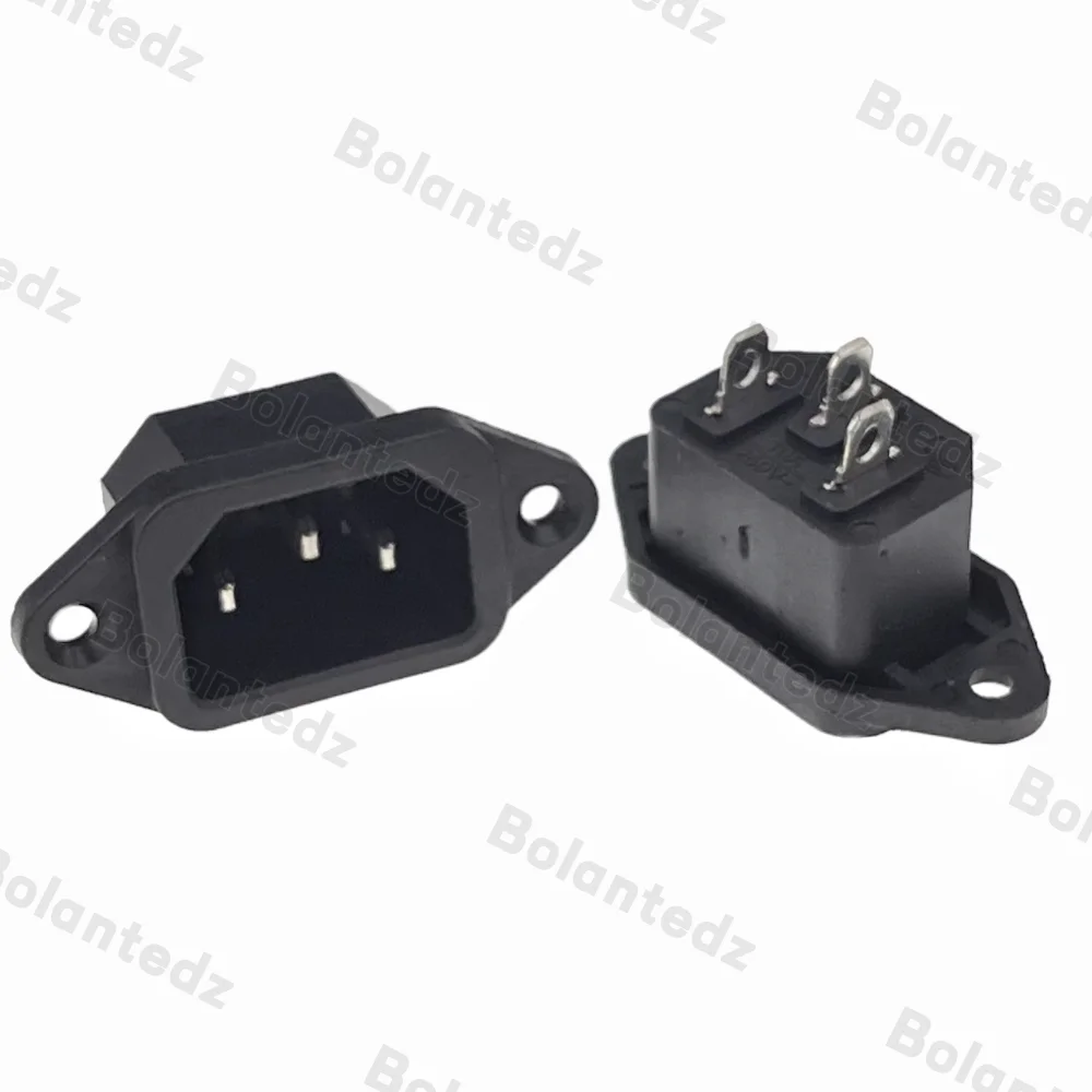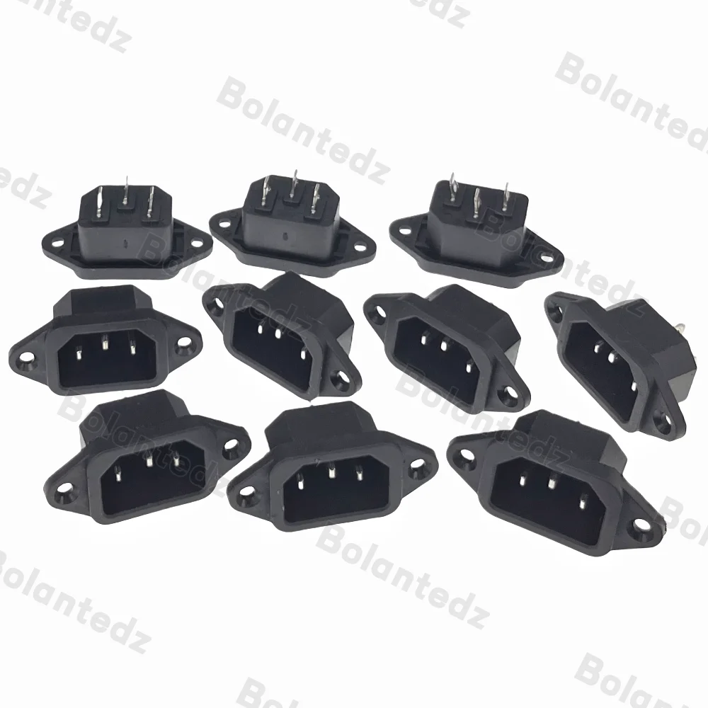 Comprar Bolantedz 3/5/10 unids/lote IEC 320 C14 3 pines enchufe macho Panel enchufes de entrada de alimentación conectores AC 250V 10A