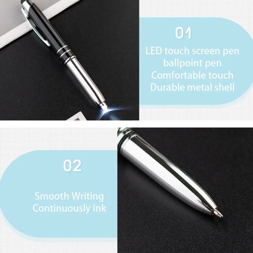 2. It has 3 functions: ball point pen, capacitance pen,and LED lamp.