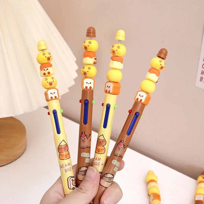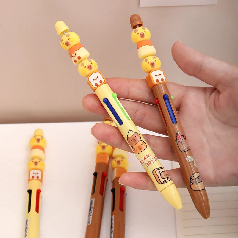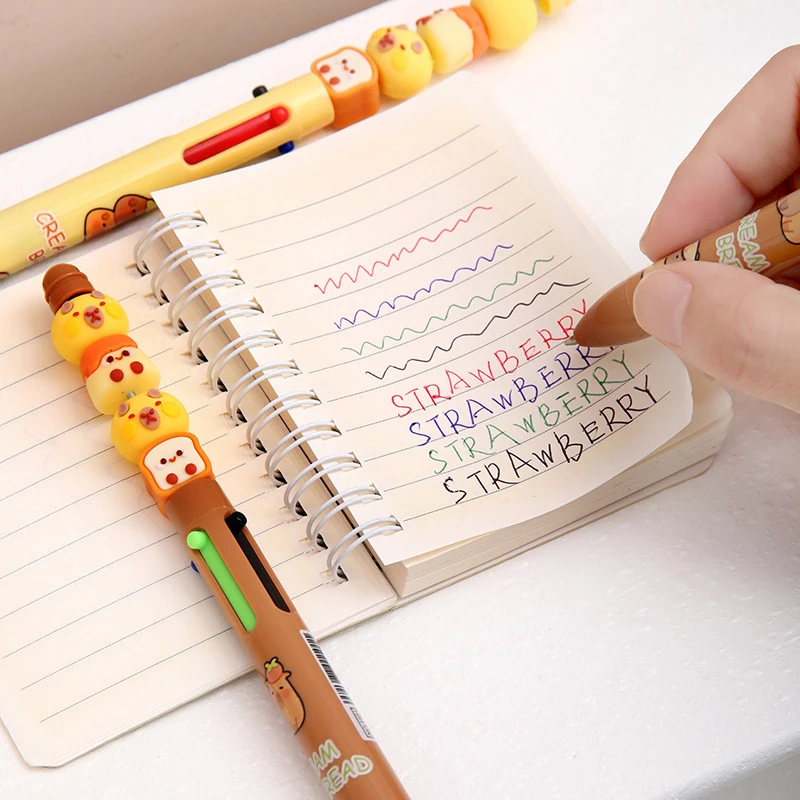 Comprar Bolígrafo de dibujos animados de 4 colores aleatorios, bonito capibara Panda, bolígrafos de escritura para niños, suministros escolares y de oficina, papelería para estudiantes, 1 ud.