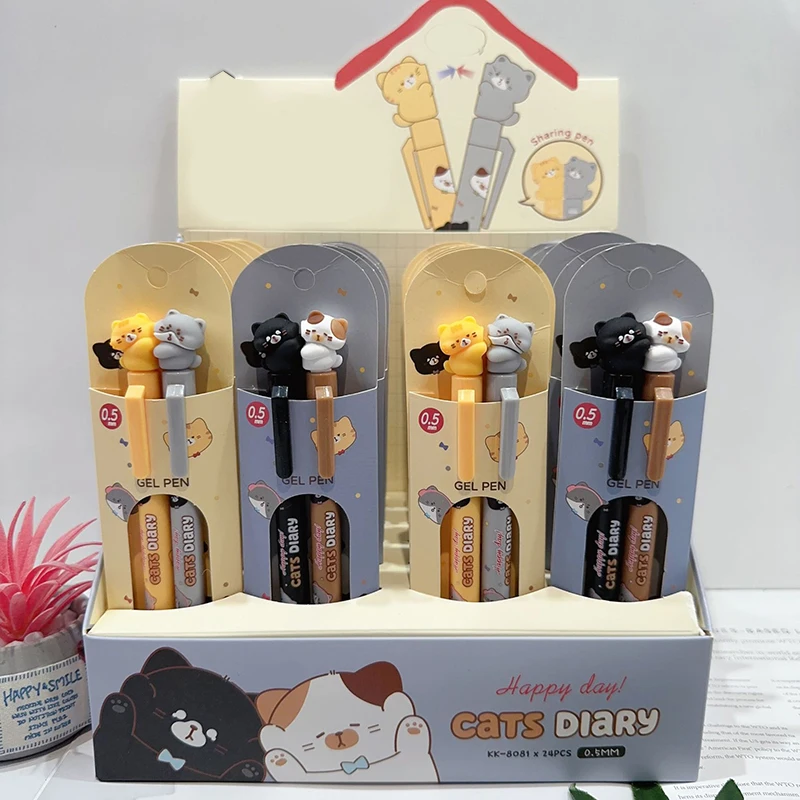 Comprar Bolígrafo de Gel de tinta negra para oficina, accesorios Kawaii, Kit de suministros escolares, regalo de gato, bonito, 2 unids/lote por caja
