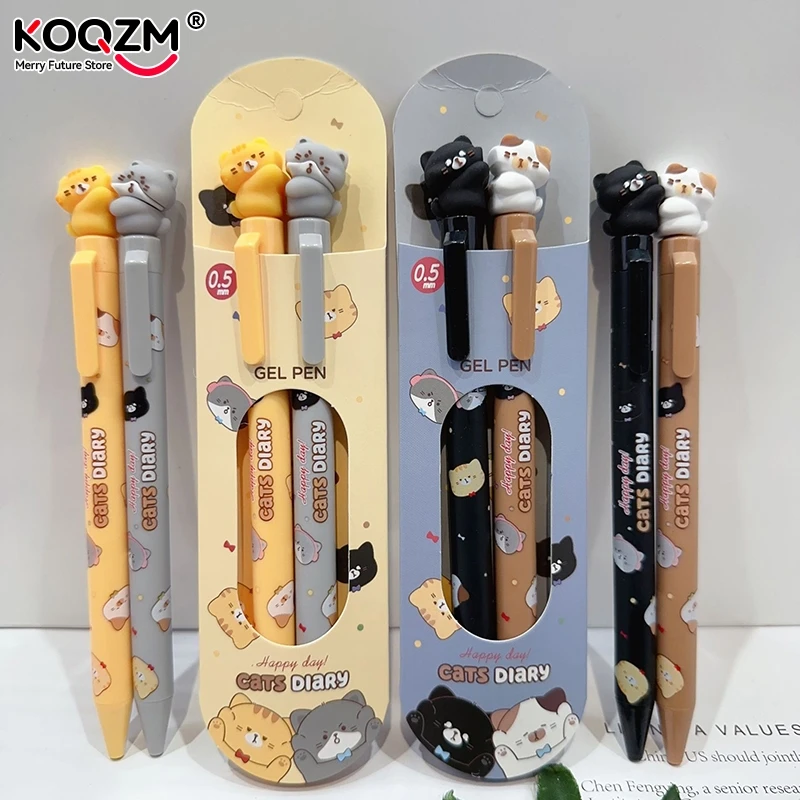 Comprar Bolígrafo de Gel de tinta negra para oficina, accesorios Kawaii, Kit de suministros escolares, regalo de gato, bonito, 2 unids/lote por caja