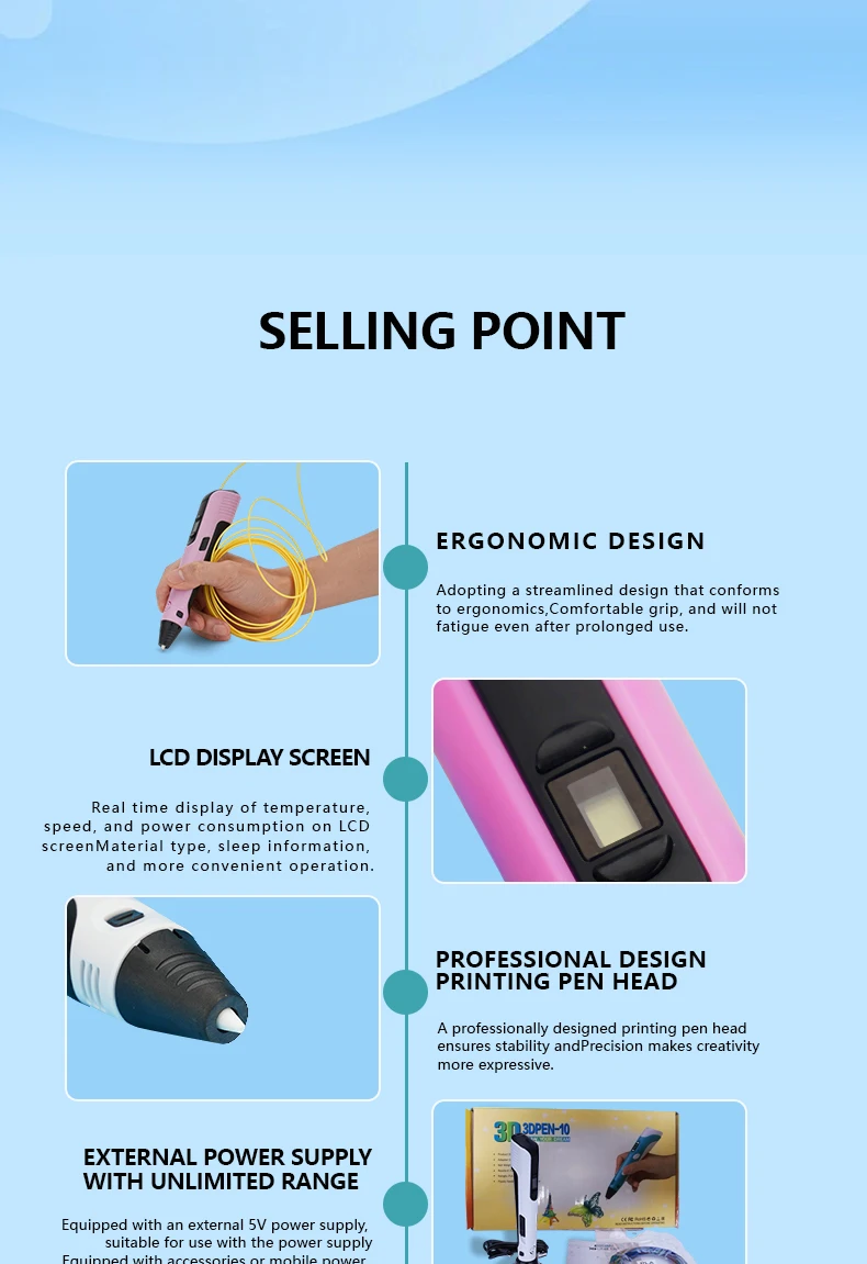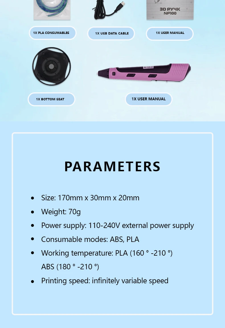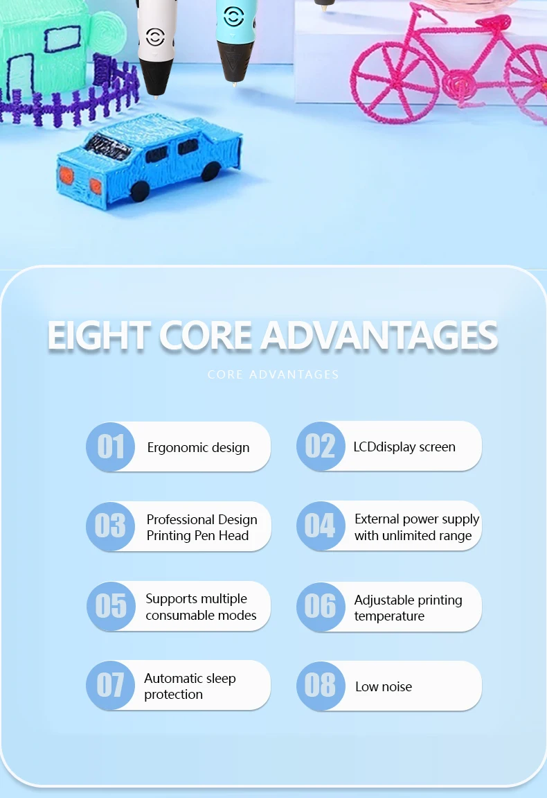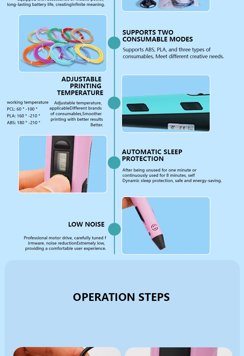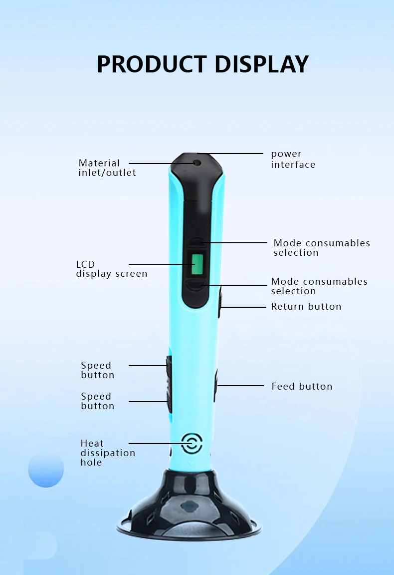 2: Para que su lápiz de impresión 3D dure más, presione el botón de salida para salir del PLA del lápiz 3D después de su uso, para no bloquear el cabezal del lápiz y afectar el siguiente uso.