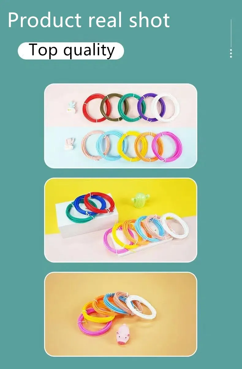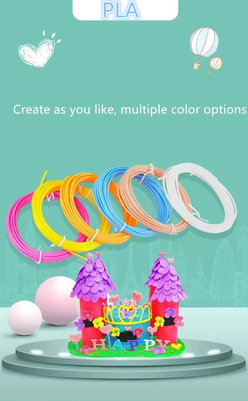 Aquí tiene 2 filamentos tipo para su elegir: PLA y PCL. ¡La temperatura de trabajo del filamento del PLA es 180 ° ~ 230 °, temperatura de trabajo del filamento de PCL es ≤ 40 ℃, así que elija por favor el filamento correcto para su pluma 3D, Gracias!