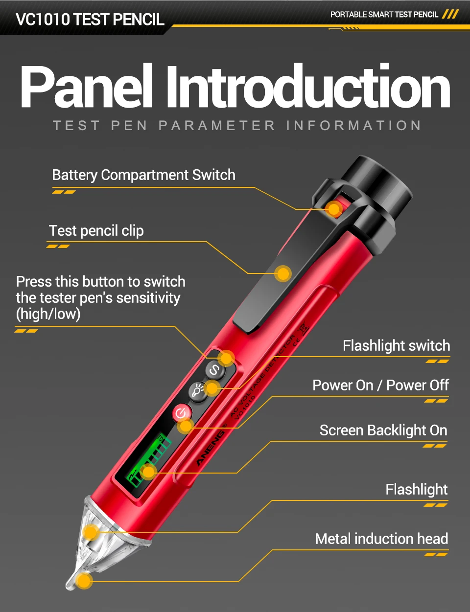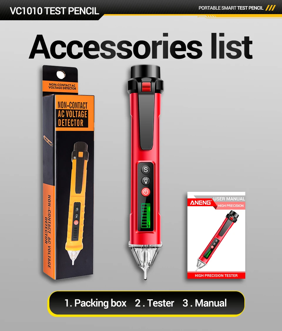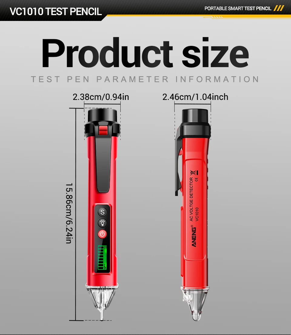 Pluma probadora de voltaje sin contacto VC1010 ANENG detectores de CA 12-1000V medidor NCV de doble sensibilidad herramientas de lápiz de prueba de Sensor eléctrico