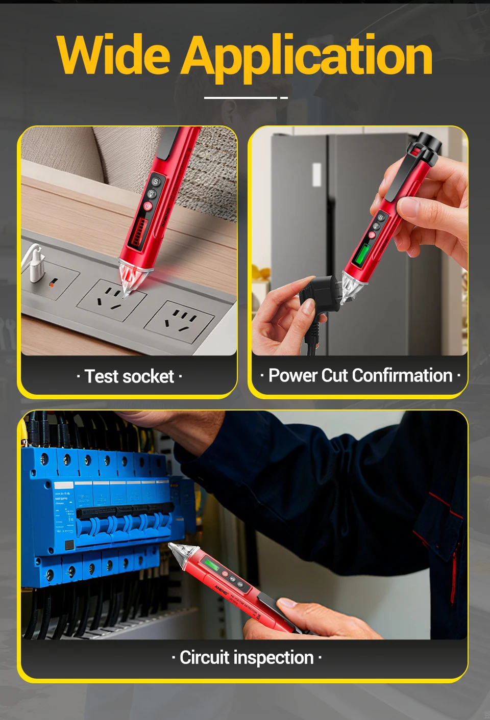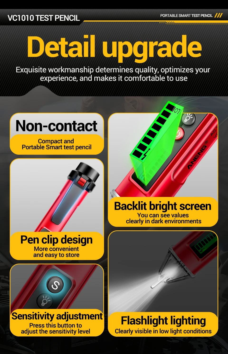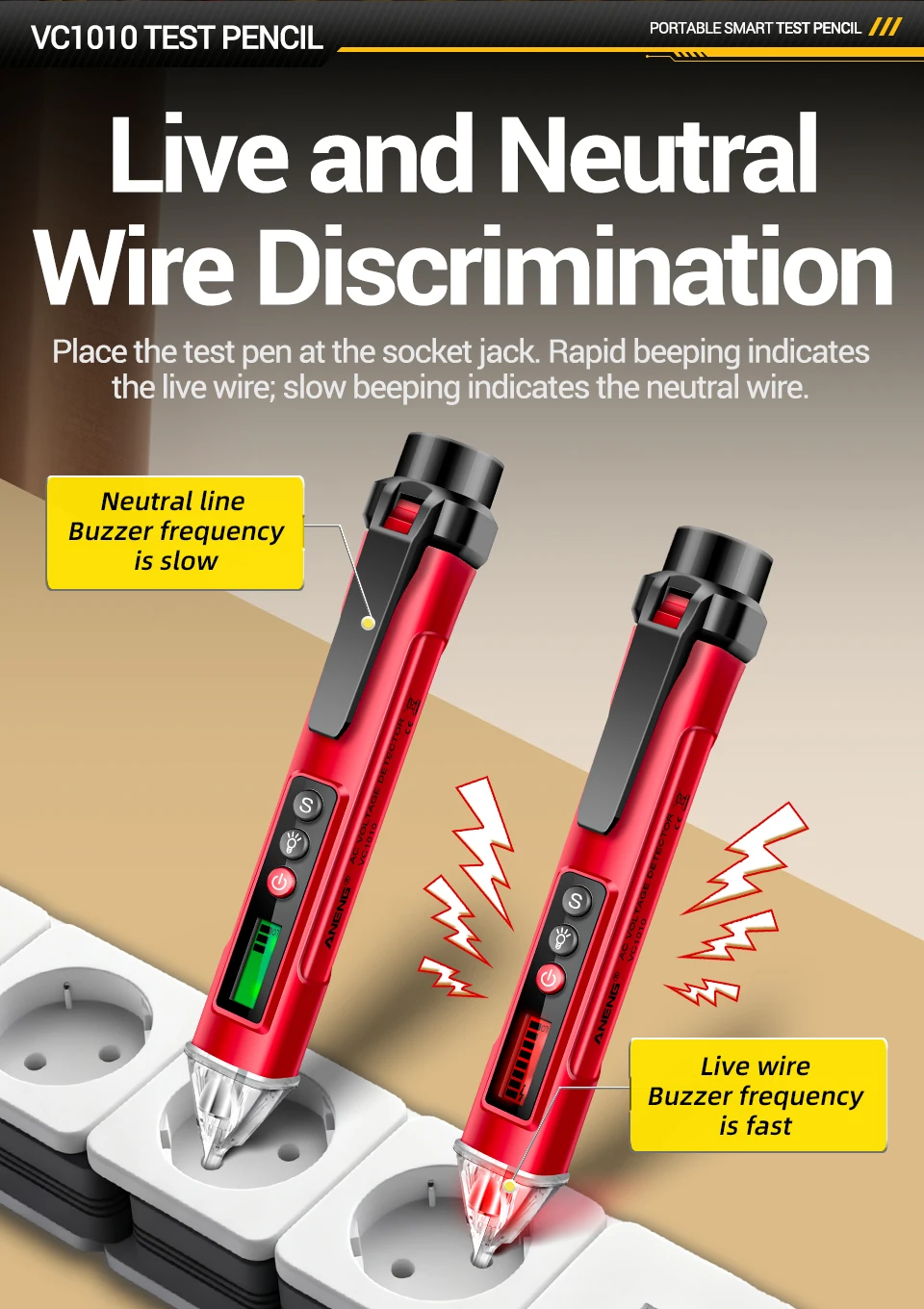 Pluma probadora de voltaje sin contacto VC1010 ANENG detectores de CA 12-1000V medidor NCV de doble sensibilidad herramientas de lápiz de prueba de Sensor eléctrico