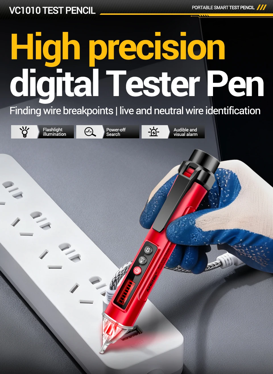 Pluma de prueba de Detector de voltaje Digital ANENG VC1010, voltaje sin contacto, 12-1000V, voltaje de CA, línea de fuego cero, lápiz de prueba