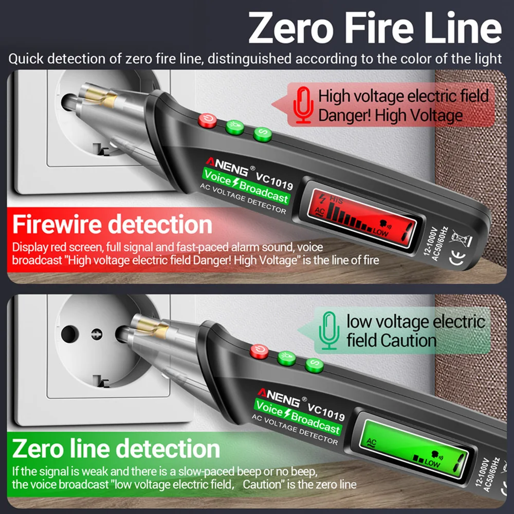 4.Identificación inteligente de línea de fuego cero, línea en vivo de pantalla roja/línea cero de pantalla verde