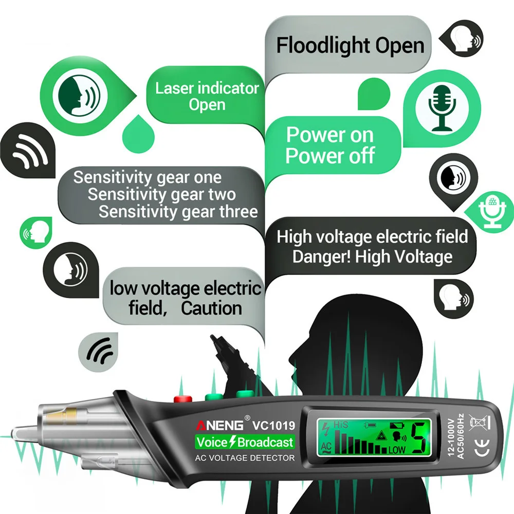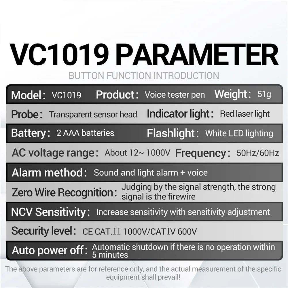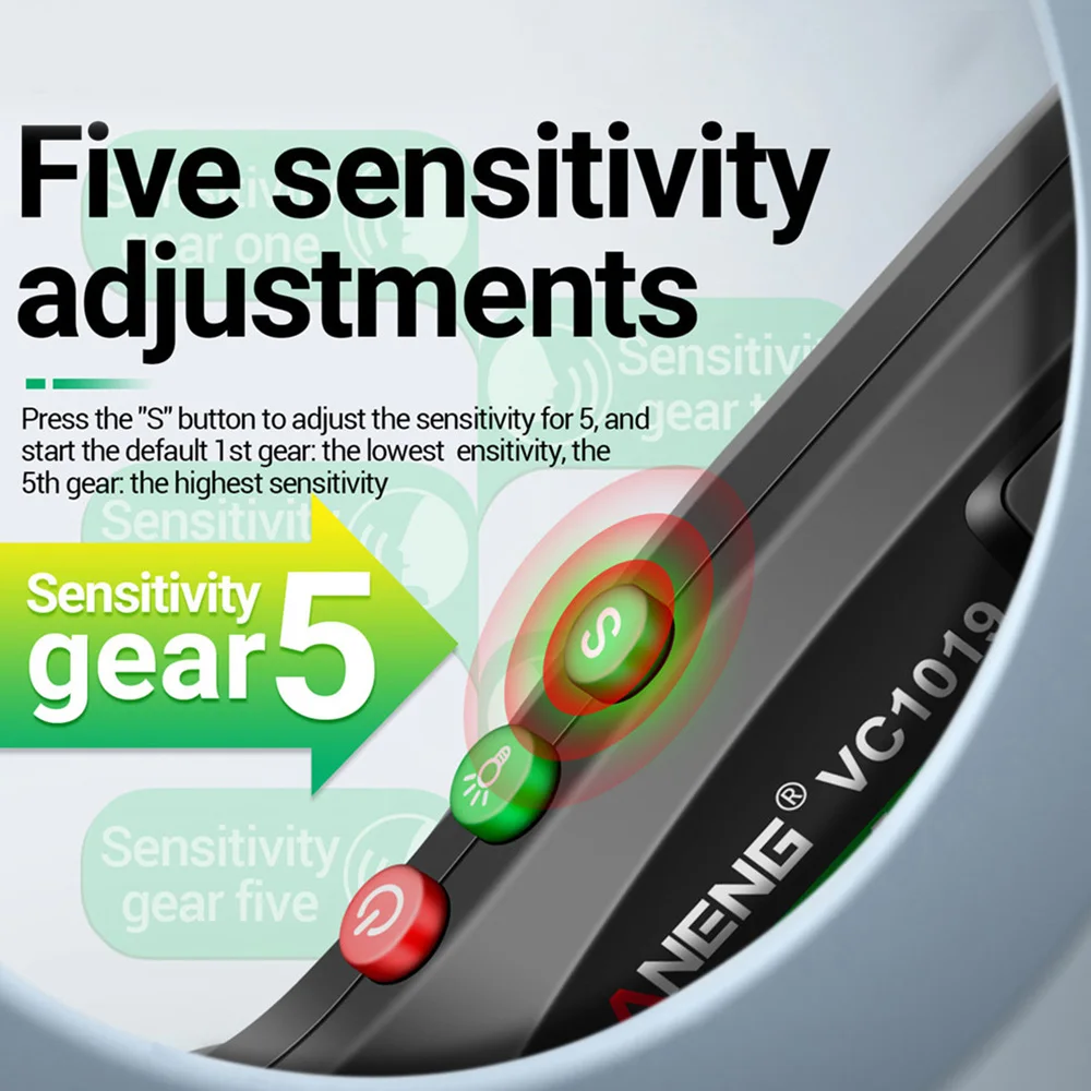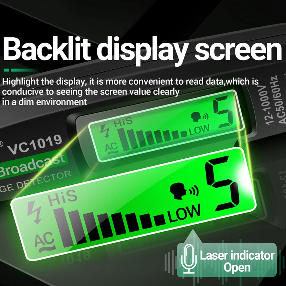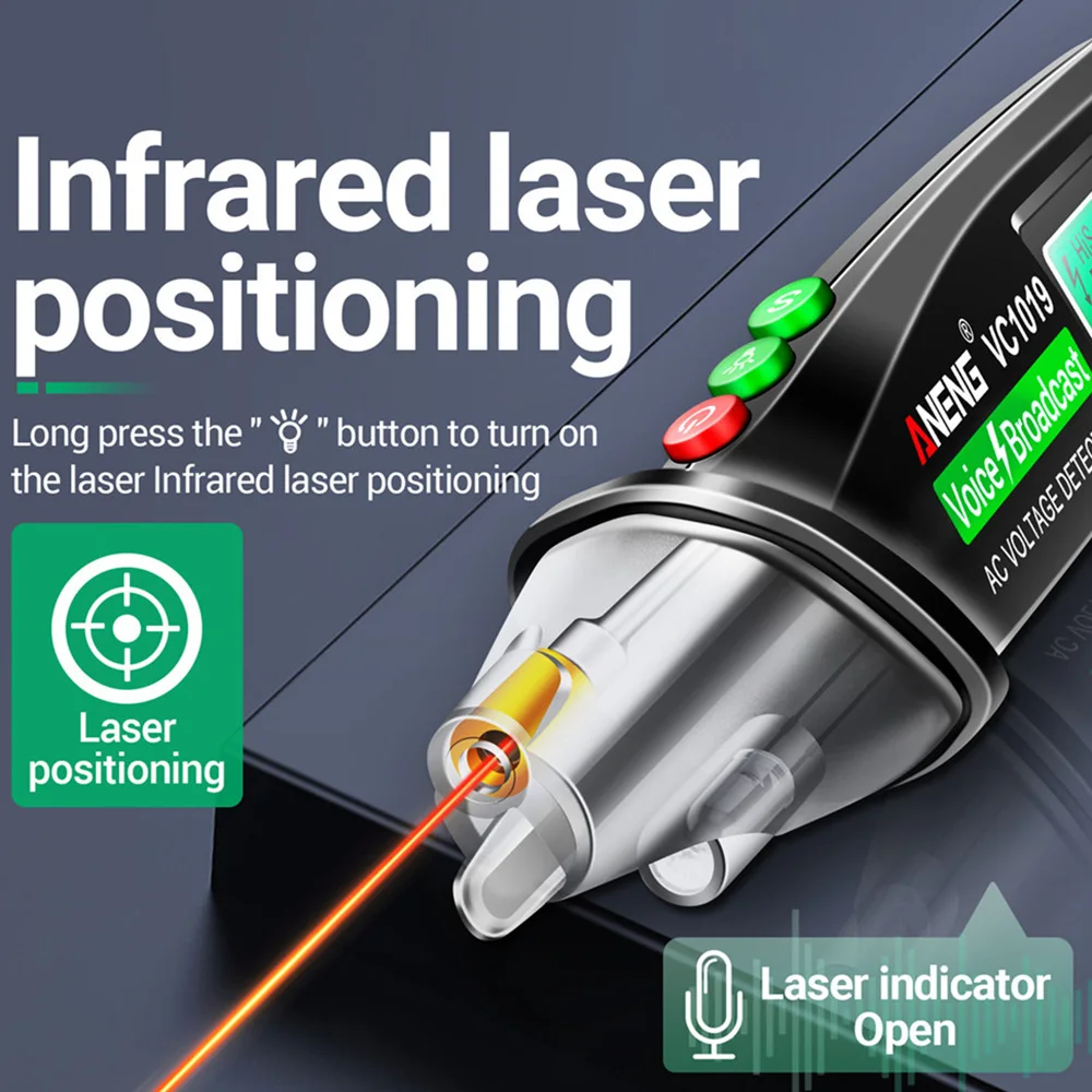 Pluma de prueba láser roja VC1019, Detector de voltaje de transmisión de voz, pluma sin contacto de corriente de 12-1000V voltios, herramienta de medidor de probador eléctrico