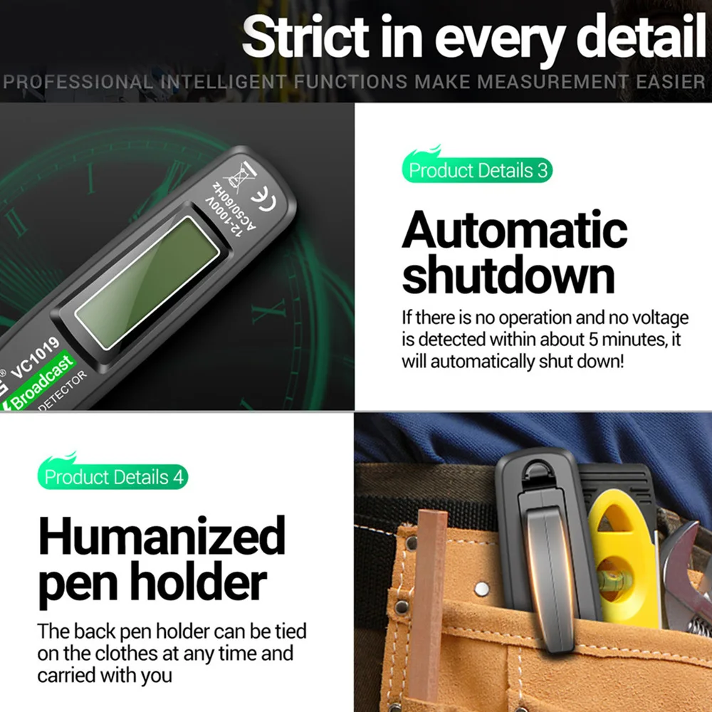 9.Apagado automático: el lápiz óptico no funciona en aproximadamente 5 minutos y no detecta una señal de voltaje.¡El lápiz se apagará automáticamente, ahorrando electricidad y más preocupaciones!