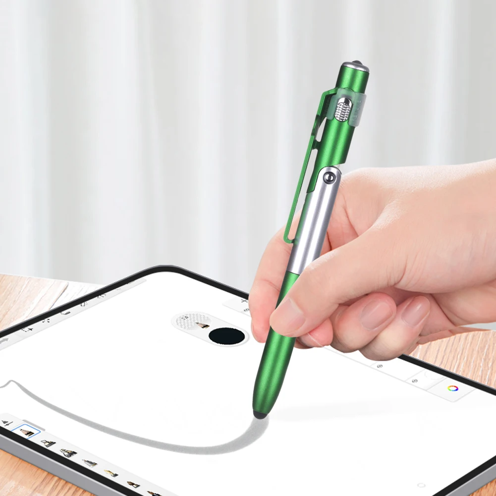 Bolígrafo multifunción 4 en 1 con luz LED, lápiz de escritura de lectura nocturna, bolígrafo táctil, papelería para estudiantes, oficina, escuela