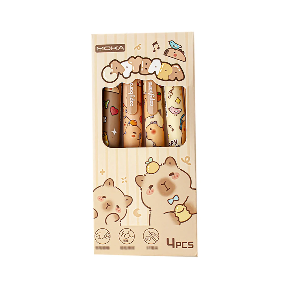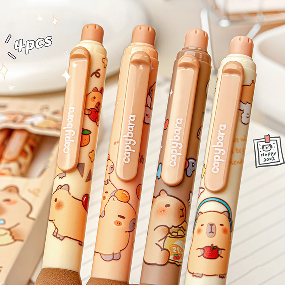 Bolígrafos de Gel borrables Capybara bonitos de dibujos animados, Kawaii, escritura de secado rápido, bolígrafos neutros suaves y elegantes, papelería estética, 4 Uds.
