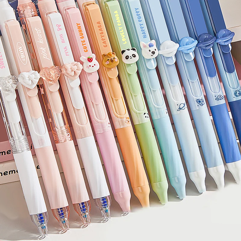 Comprar Bolígrafos de Gel borrables de dibujos animados Kawaii, bolígrafos neutros de presión a la moda, bolígrafos suaves para escribir, papelería para estudiantes, suministros de oficina, 4 Uds.