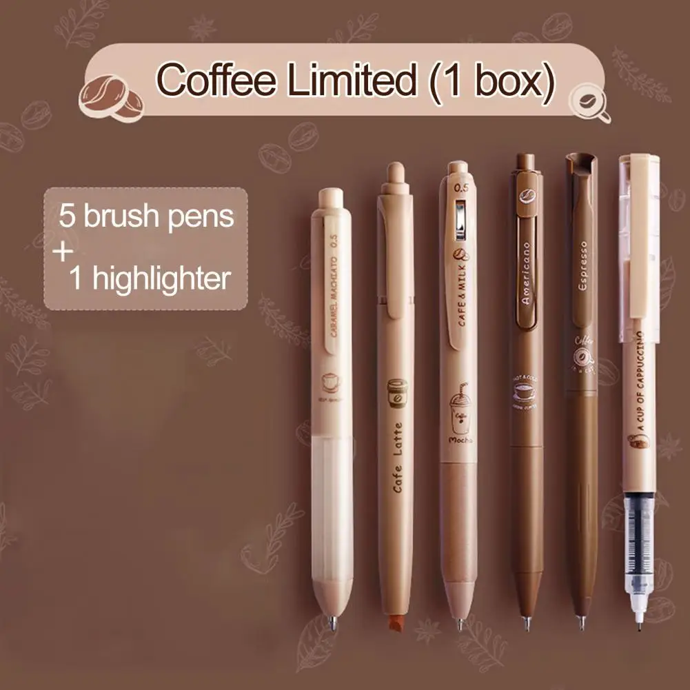 Bolígrafos de Gel, bonitos bolígrafos de café, bolígrafos retráctiles de tinta de Gel de escritura suave para la escuela, suministros de oficina, juego de 6 piezas, paquete variado de bolígrafos de Gel