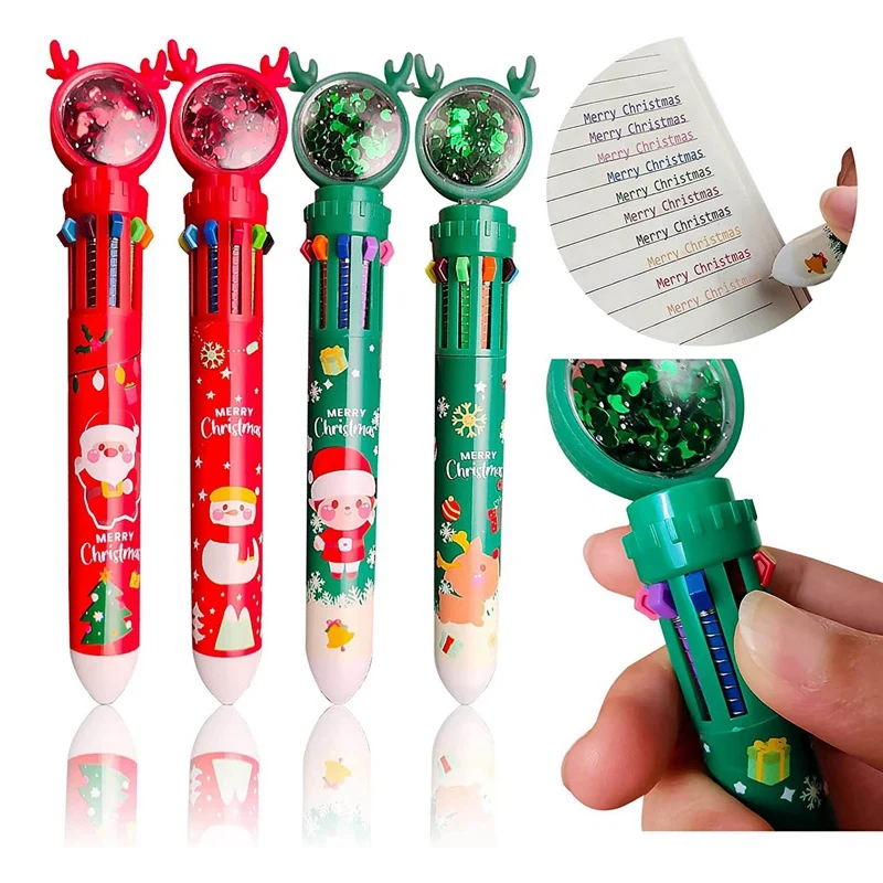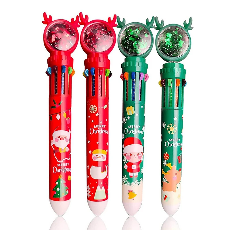 Bolígrafos navideños de 10 colores, bolígrafo retráctil tipo empuje, 1 bolígrafo marcador multicolor regalos de navidad