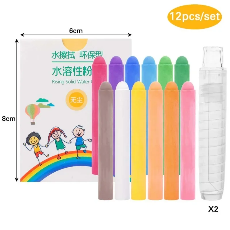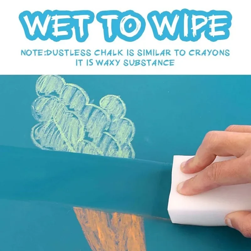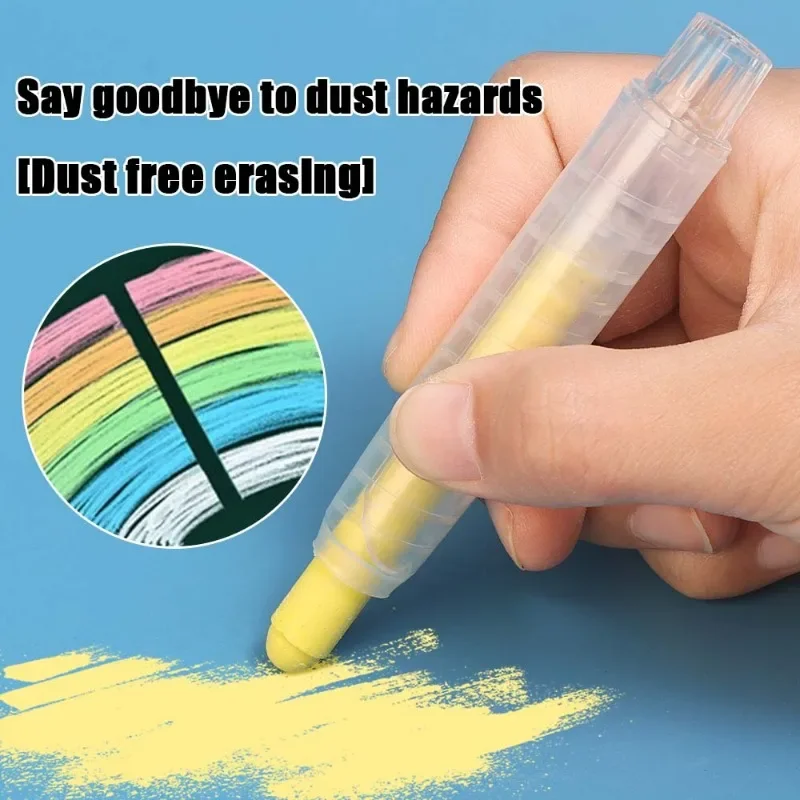 parecen mas lapices de cera (crayones) que tiza, si bien no machan con polvo, por que no son tizas propiamente tal, para borrarlas hay que limpiar con un paño mojado, y al pintar los colores no quedan tan definidos.