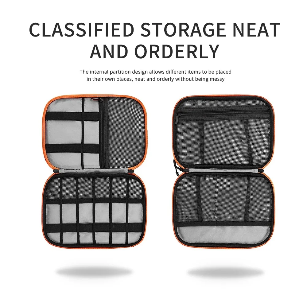 Diseño de espacio de doble capa.Es adecuado para cables de datos, auriculares, cables de datos, unidades flash USB, tarjetas SD, iPads, bancos de energía, ratones, cargadores y otros objetos pequeños.