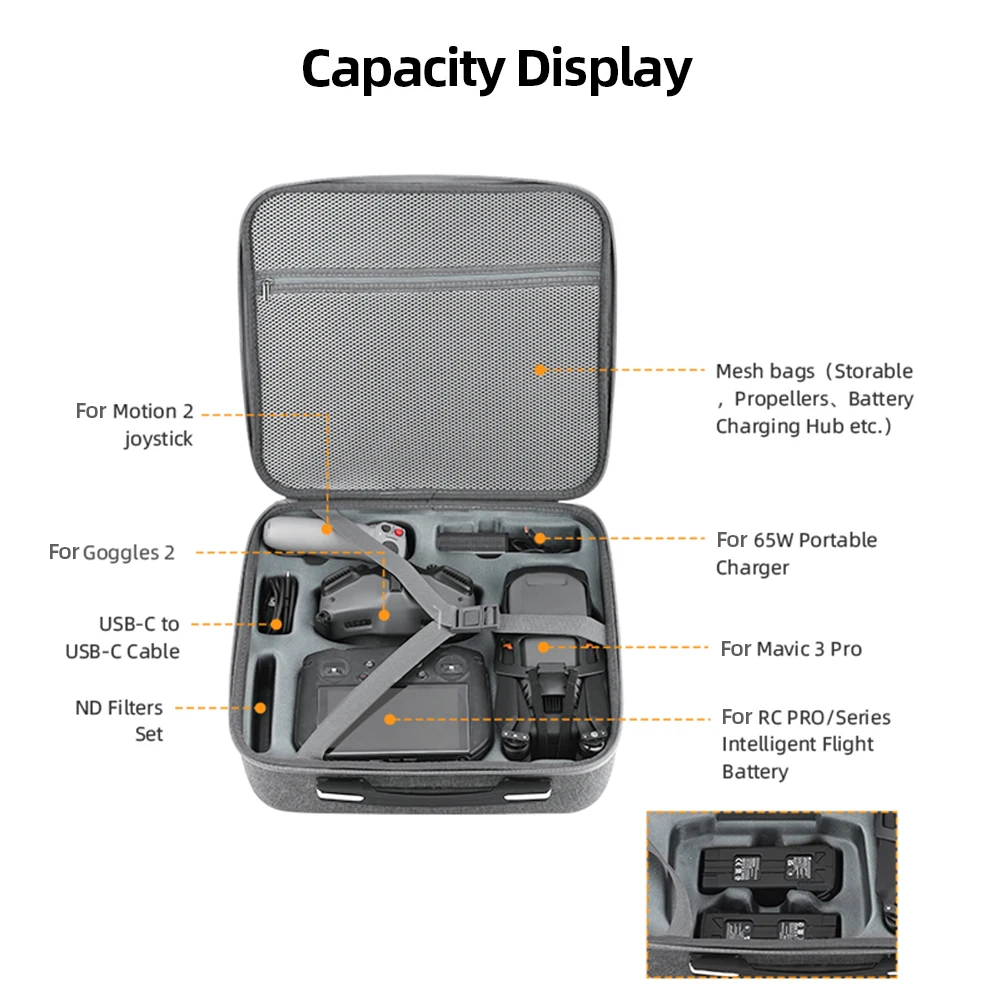 Caja protectora con correa ajustable, bolsa de almacenamiento de avión RC, bolsa de malla integrada, bolsa cruzada resistente a la presión para DJI Mini 3 Pro
