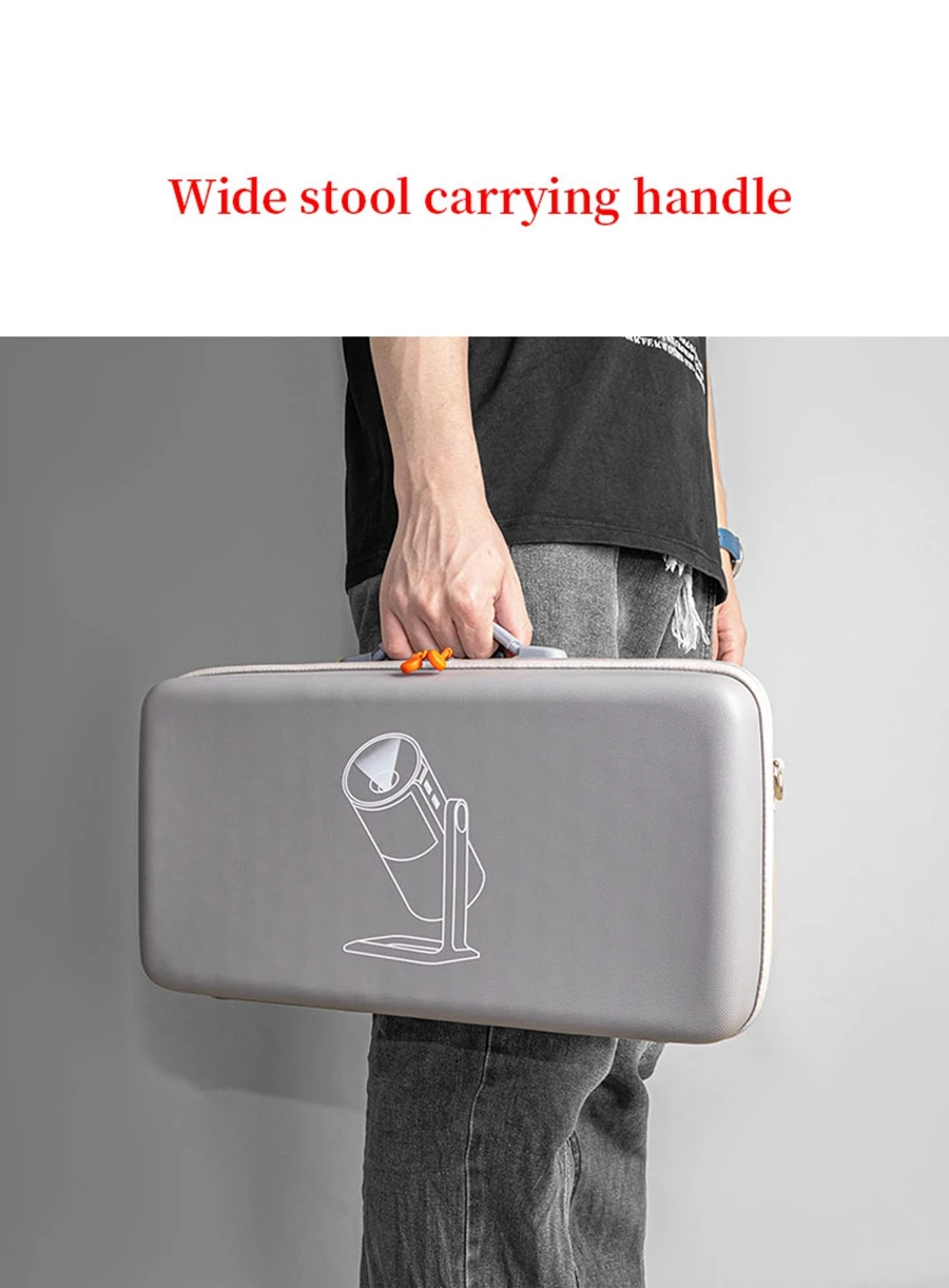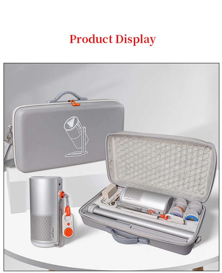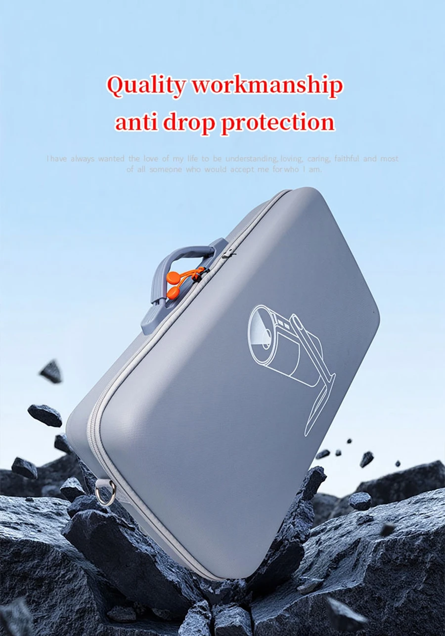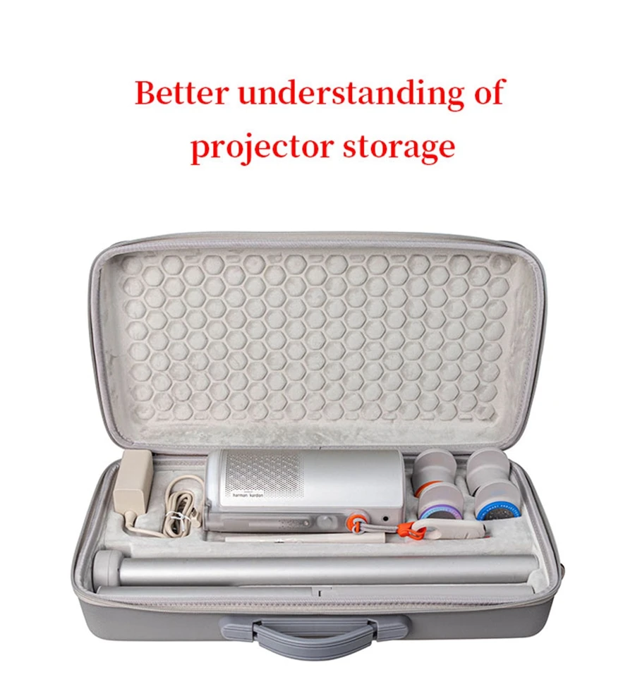 Características: Tejido EVA de calidad resistente a la compresión, resistente al desgaste, almacenamiento conveniente, Asa portátil, fácil de transportar. Puede almacenar proyector, accesorios y soporte de batería.